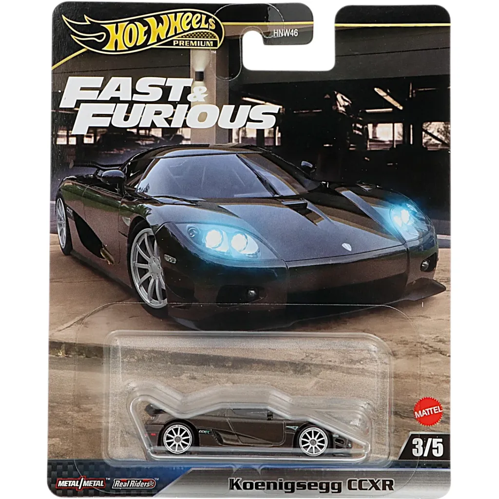 Koenigsegg CCXR i svart från Fast & Furious-filmen Fast Five där den kördes av Roman Pearce och Tej Parker. Bilen är tillverkad av Hot Wheels i skala 1:64 (6,6 cm).