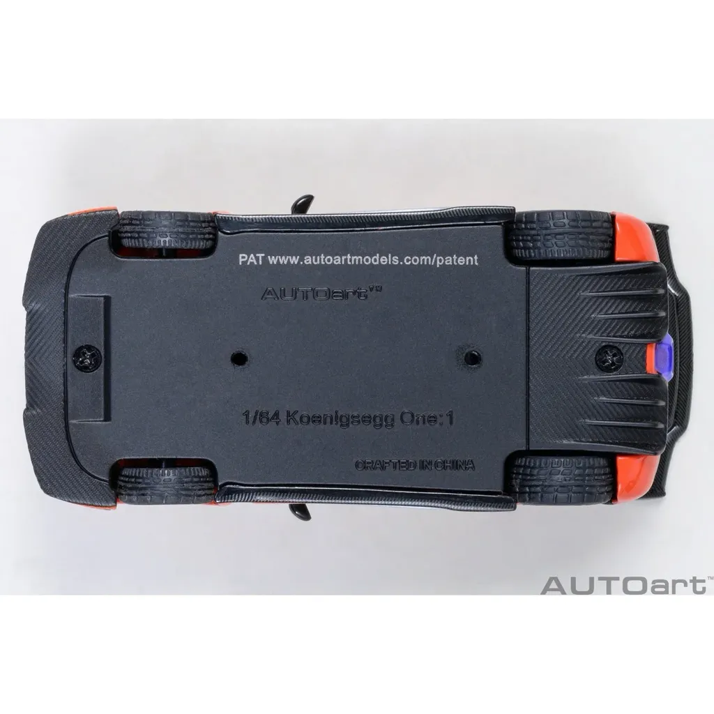 Orange (Lava Orange) Koenigsegg One:1 som liten modellbil i skala 1:64 (7 cm) från AUTOart.