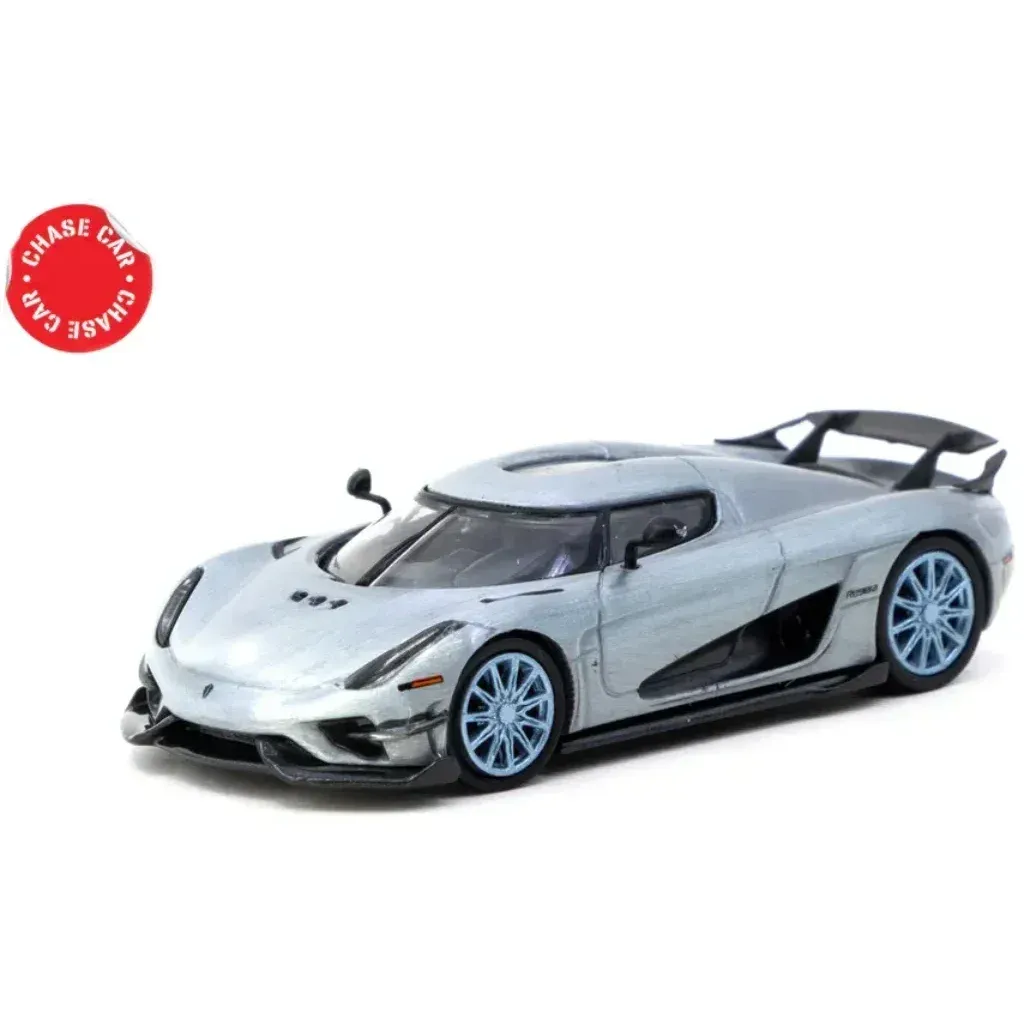 Vid köp av denna bil finns chans till "Chase Car" vilket innebär att bilen är olackad (ZAMAC). Bilen betingar då normalt ett högre värde. Vi erbjuder fri retur om man mot förmodan önskar returnera en chase car. Kartongen är inplastad och vi kan inte se vid leverans om supersportbilen från Koenigsegg är blå eller olackad.