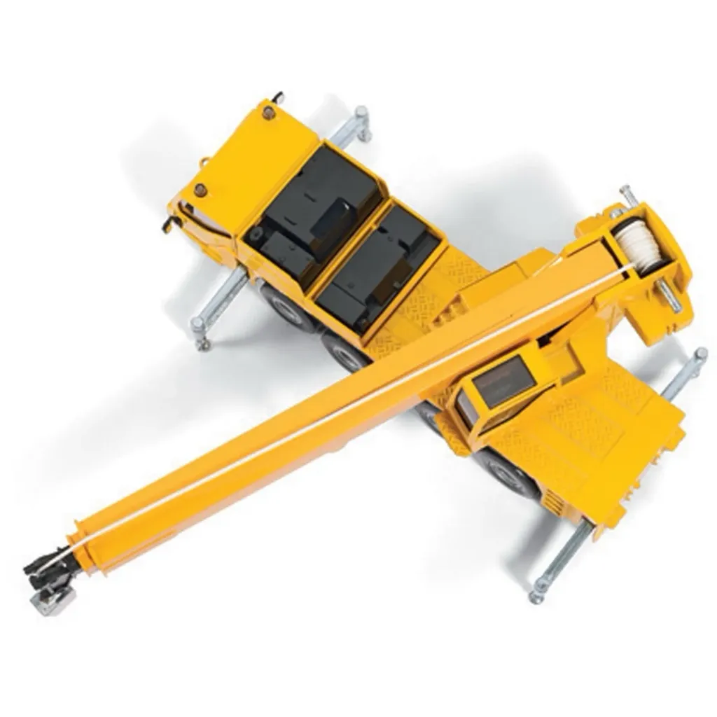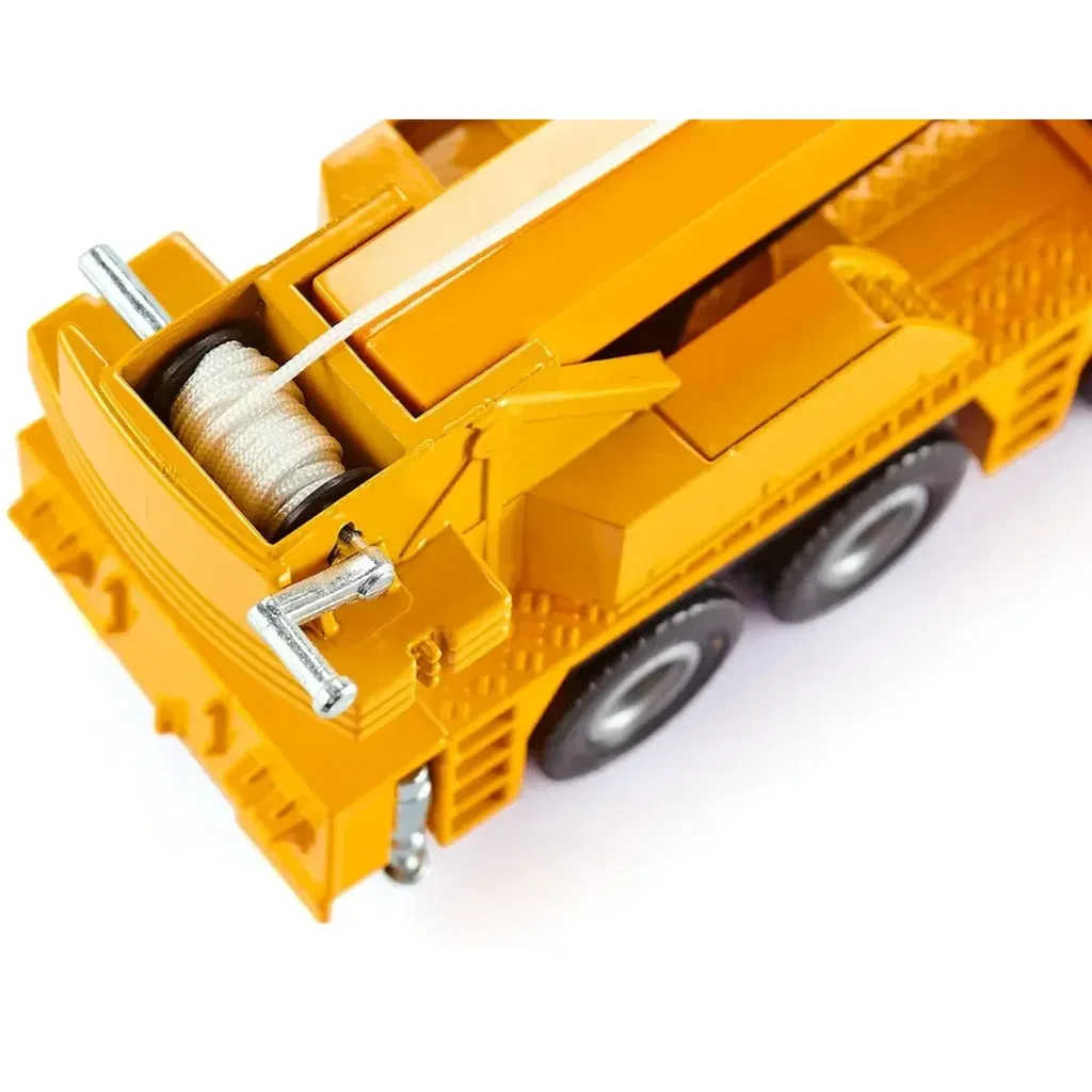 Gul kranbil tillverkad av Siku i skala 1:55 (20 cm).