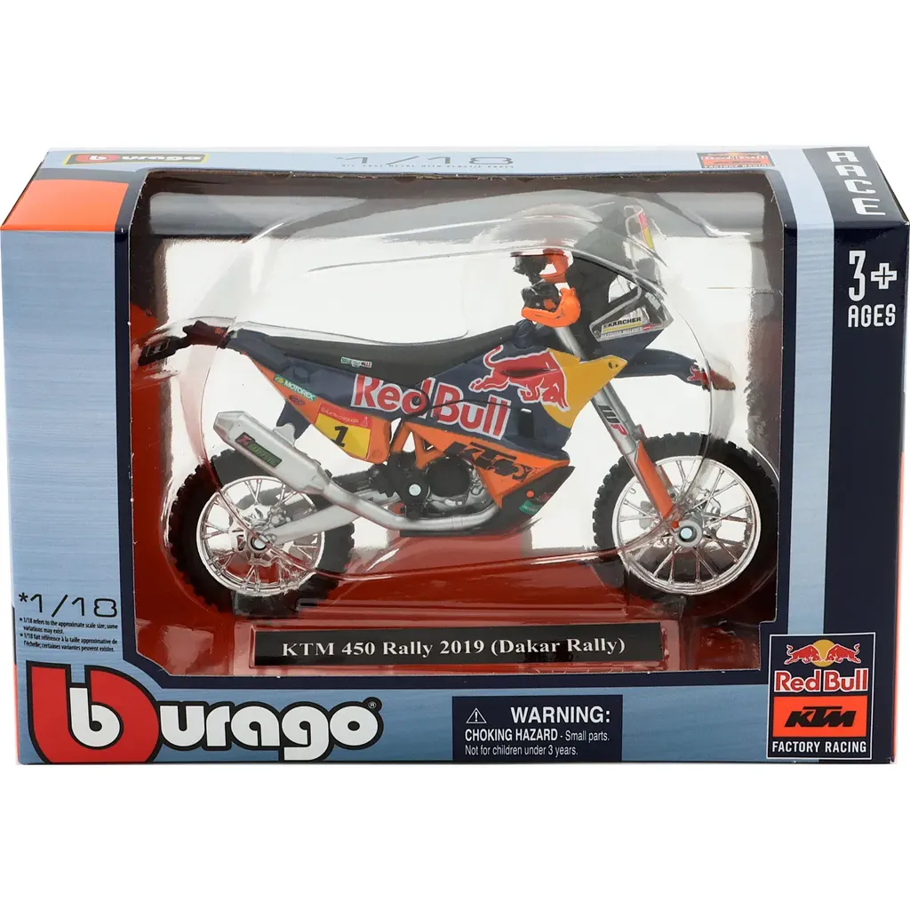 KTM 450 Rally 2019 (Dakar Rally) som modell / leksak från Bburago i skala 1:18 (12 cm lång).