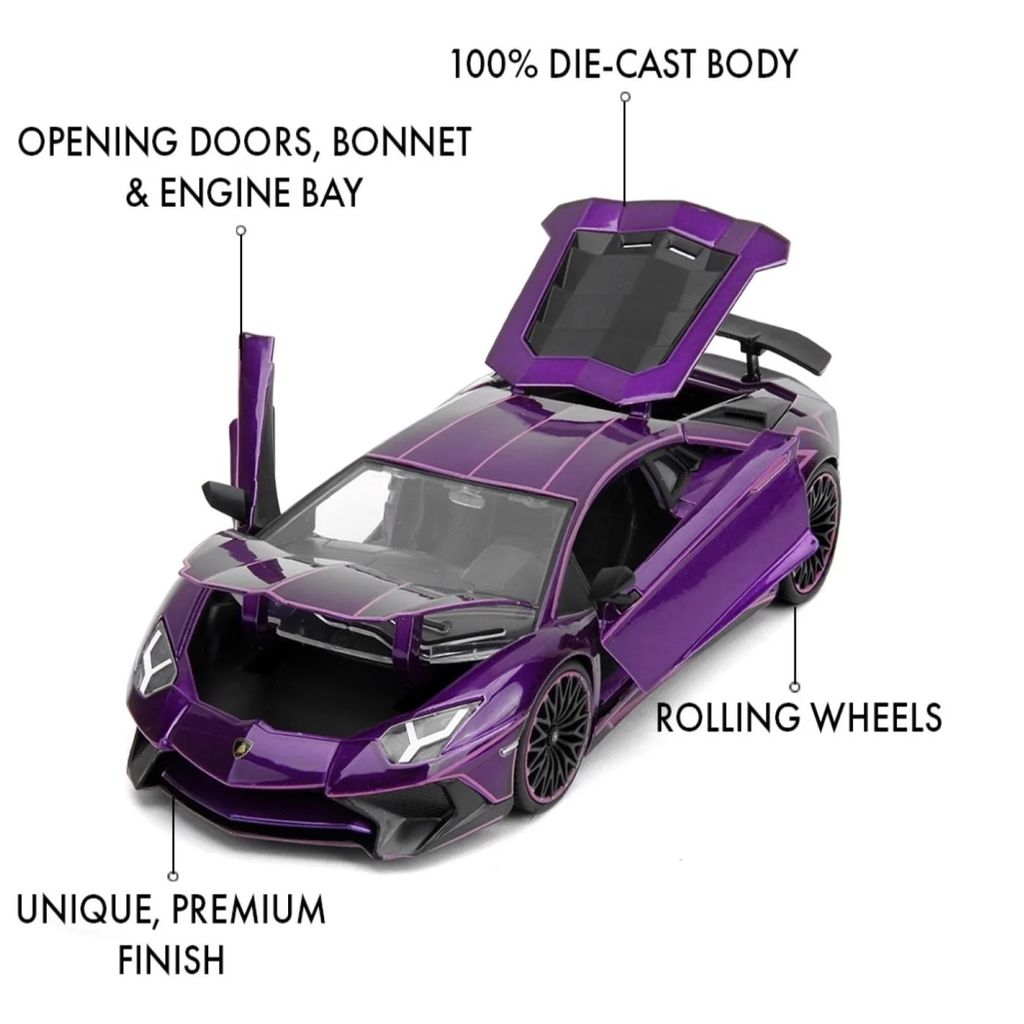 Lila Lamborghini Aventador SV från Jada Toys och deras serie Pink Slips i skala 1:24 (21 cm).