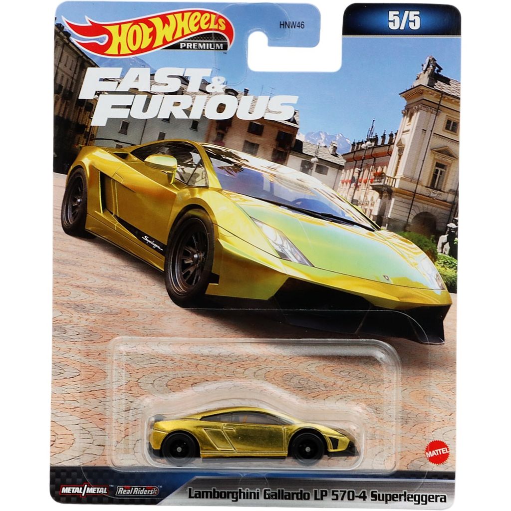 Lamborghini Gallardo LP 570-4 Superleggera i guld från Hot Wheels Premium. Bilen ingår i setet Fast & Furious Premium Series och är där bil 5 av 5 i Mix 4 2023.