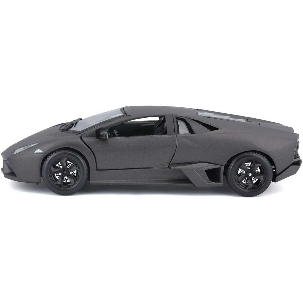 Mörkgrå (nästan svart, matt lack) Lamborghini Reventón som modell och leksak från Bburago i skala 1:24 (18 cm).