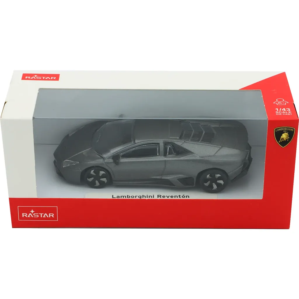 Lamborghini Reventón i gråmetallic som leksaksbil från Rastar. Bilen är 11 cm lång (skala 1:43).