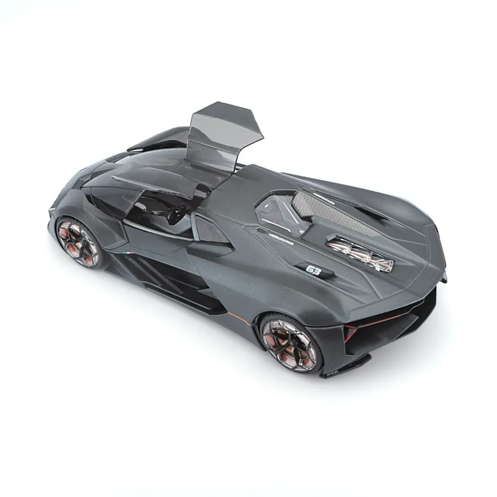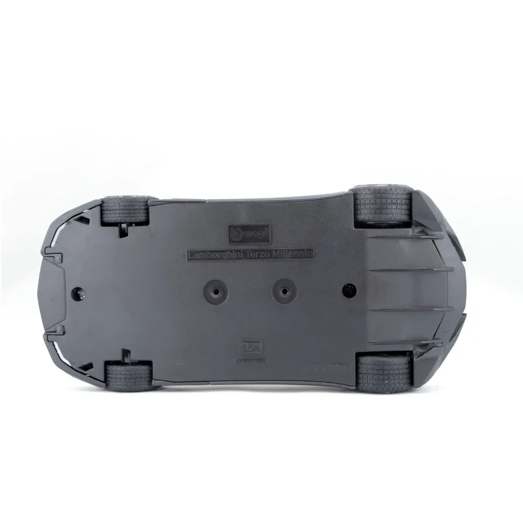 Konceptbilen Lamborghini Terzo Millennio som leksaksmodell från Bburago. Bilen är i skala 1:24 (19 cm) och har öppningsbara fönsterdörrar. Mörkgrå metalliclack.