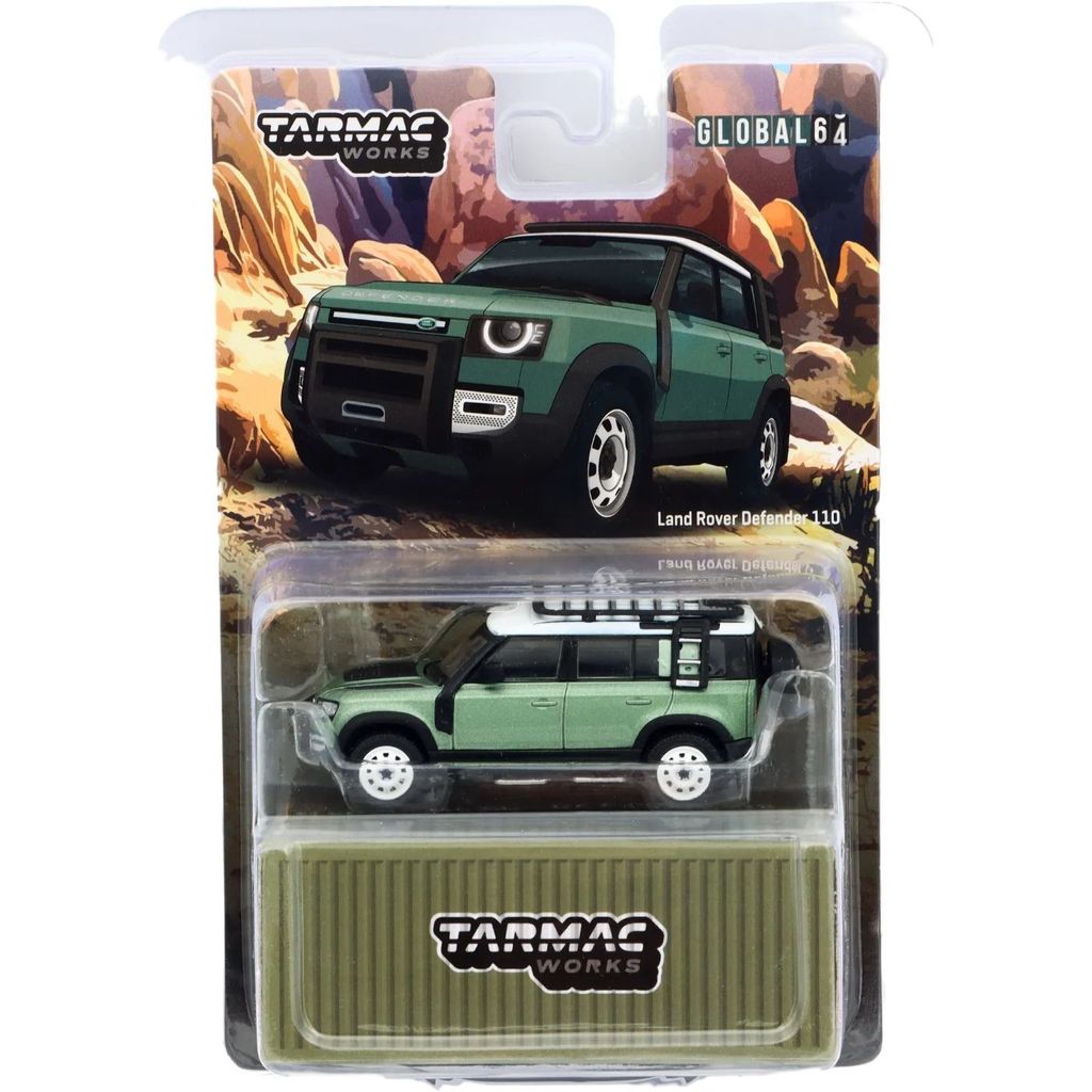 Skalenlig modell för vuxna samlare (14+) i form av en grön Land Rover Defender 110. Bilen är framtagen av Tarmac Works i skala 1:64 vilket ger oss en liten modellbil på 7,5 cm.