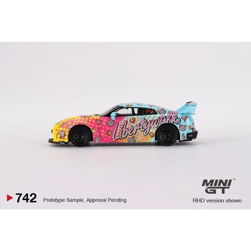 LB-Silhouette WORKS GT Nissan 35GT-RR Ver.1 LBWK KUMA från Mini GT i skala 1:64 (ca 7 cm). Bilen har produktnummer 742 hos Mini GT. Den här versionen är vänsterstyrd (LHD) med ratten på vänster sida.