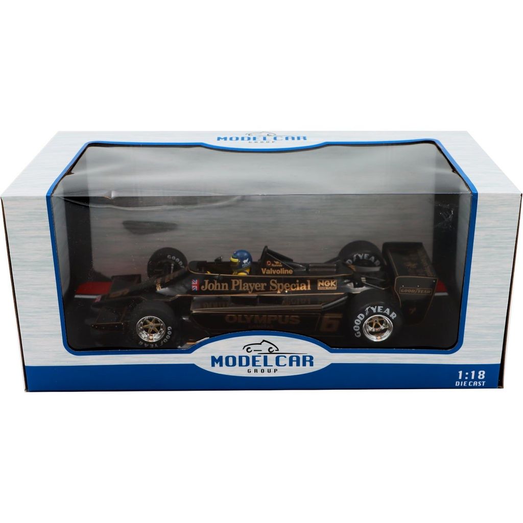 Bilen som är den karaktäristiska John Player Special nummer 6 gör sig helt perfekt som prydnad i alla formel 1 och racingfantasters hem. Vi har 1 exemplar av den här bilen i lager (i skrivande stund 2022-06-14) och vill helst inte sälja den.