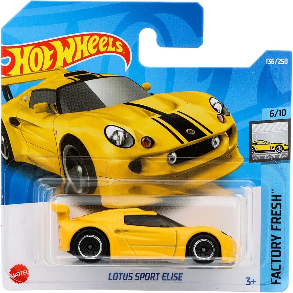 Lotus Sport Elise från Hot Wheels och serien Factory Fresh där denna leksaksbil är bil nummer 6/10. Bilen är nummer 136/250 från 2022 och har ett short card (5785).
