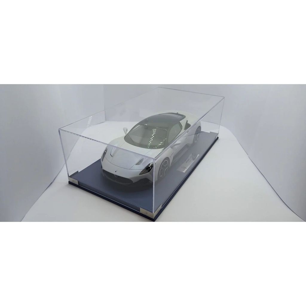 I skala 1:12 erbjuder vi denna exklusiva och kraftigt limiterade modellbil där en vit (Bianco Audace) Maserati MC20 stått modell hos den av Maserati licensierade modelltillverkaren Maserati Model.
