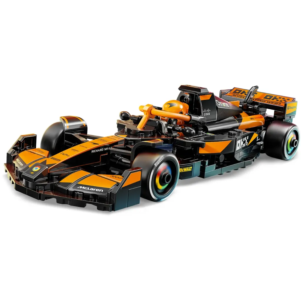 F1-bilen McLaren F1 Team MCL38 som LEGO. Formelbilen kördes av Lando Norris och Oscar Piastri under 2024 Formula One World Championship.