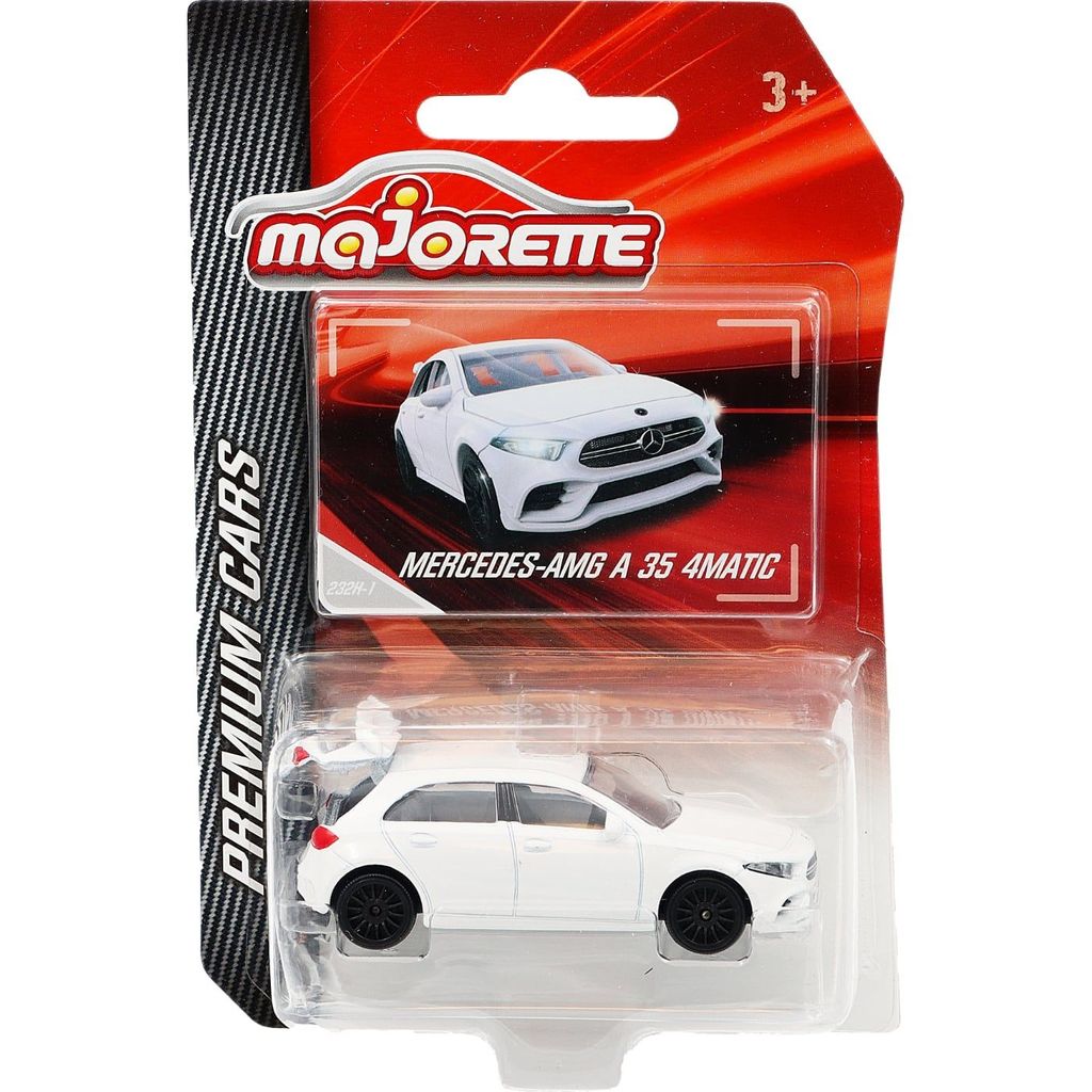 Vit Mercedes-AMG A 35 4Matic i skala 1:59 från Majorettes serie Premium Cars.
