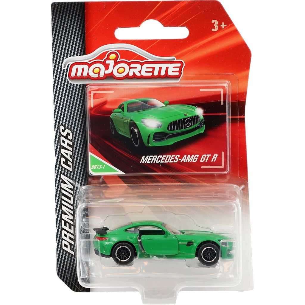 Grön Mercedes-AMG GT R i skala 1:61 från Majorettes serie Premium Cars.