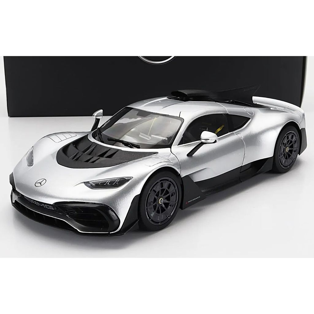 Mercedes-AMG ONE (C298), årsmodell 2022, från tyska modellbilstillverkaren NZG i skala 1:18. Färgen är silver.