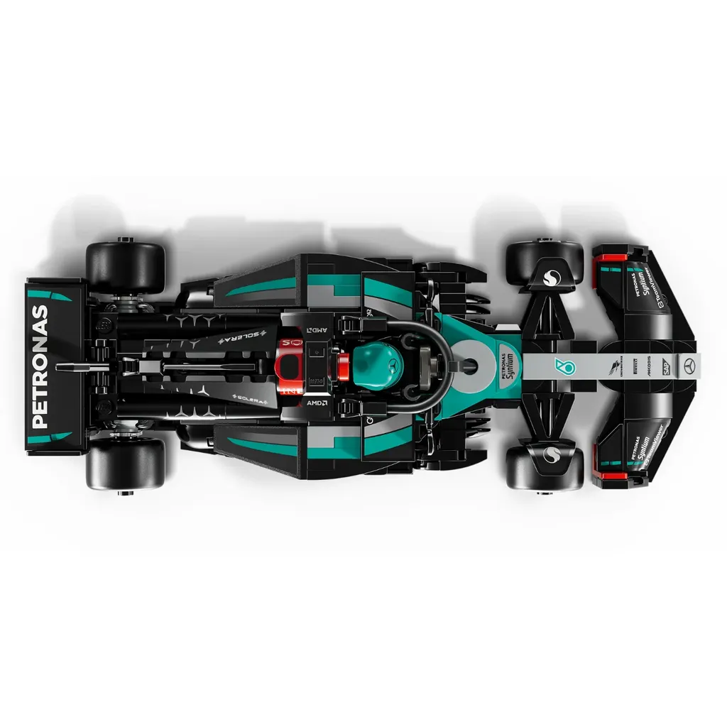 F1-bilen Mercedes-AMG PETRONAS F1 Team W15 E Performance som LEGO. Formelbilen kördes av Lewis Hamilton och George Russell under 2024 Formula One World Championship.