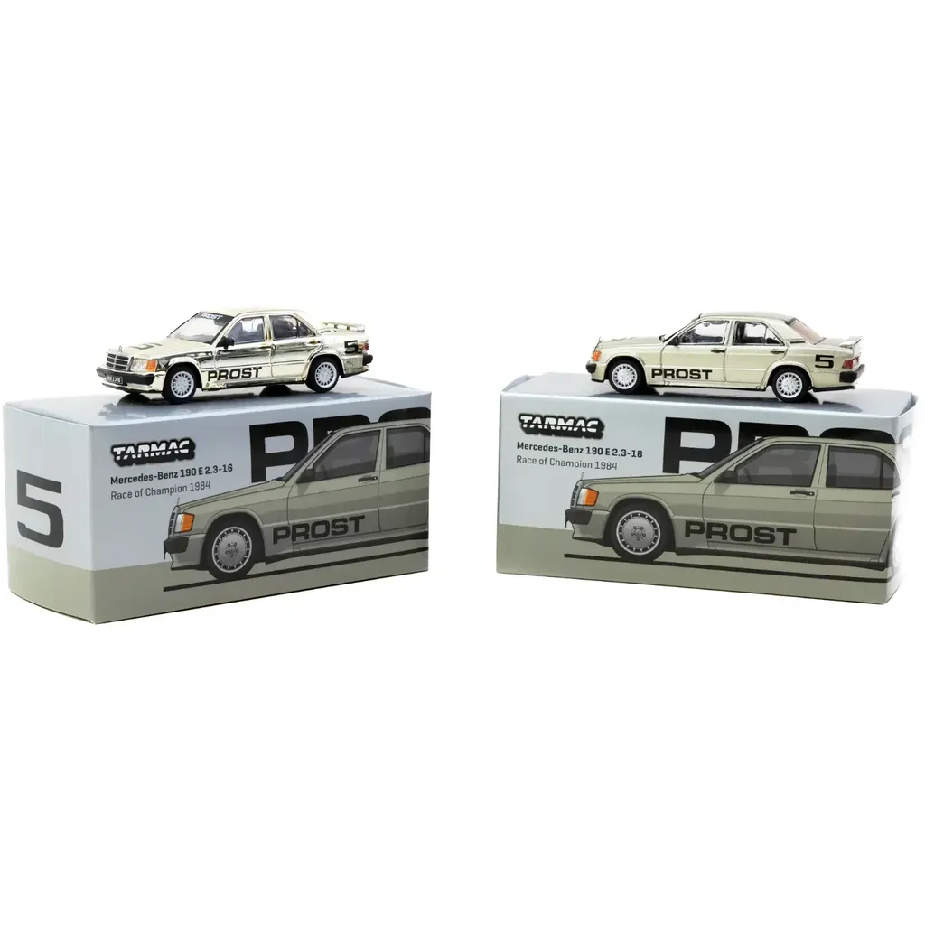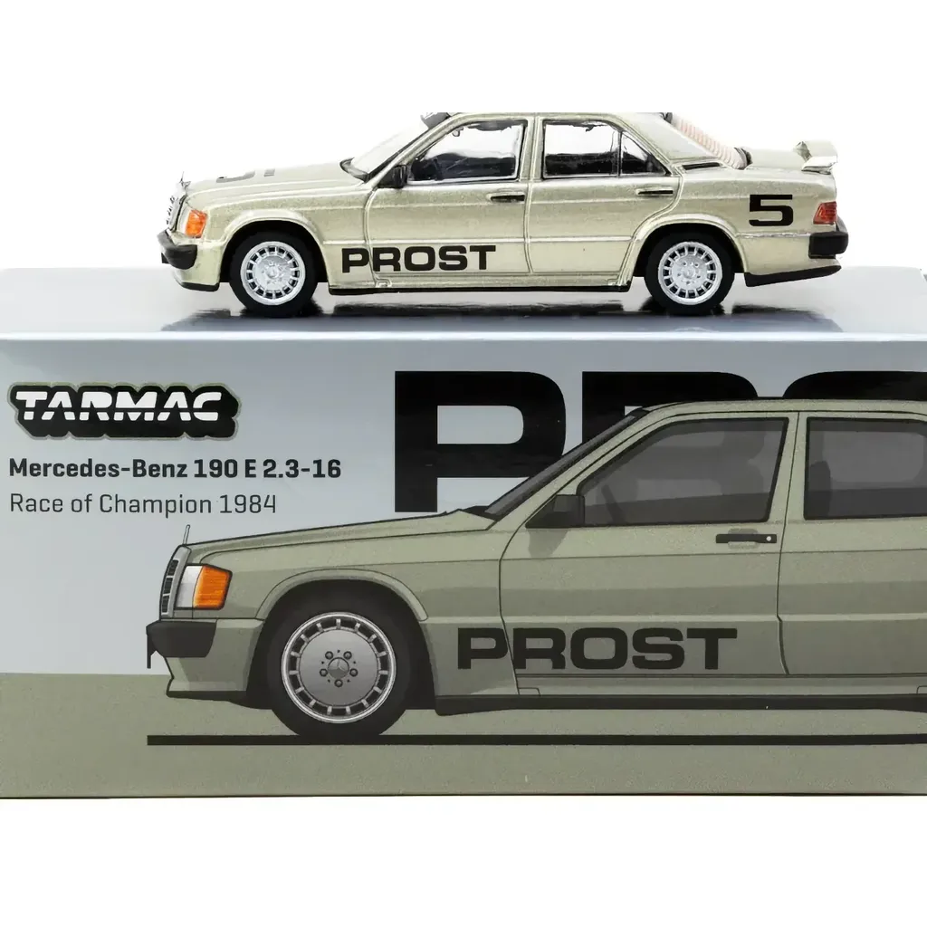 Mercedes-Benz 190 E 2.3-16 - Race of Champion 1984 - Alain Prost. Modellen är tillverkad av Tarmac Works och ingår i Tarmacs serie GLOBAL64. Skalan är 1:64 vilket i detta format kan översättas till ca 7 cm Mercedes-modell.