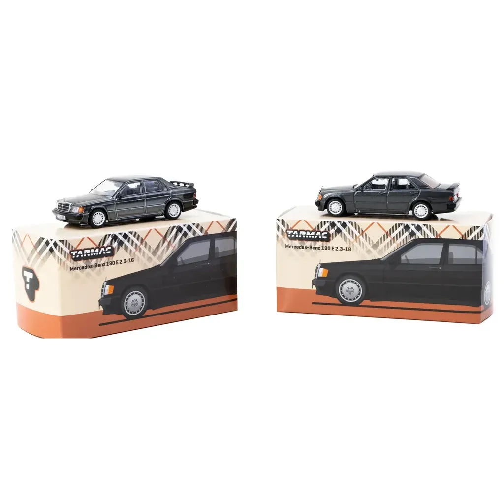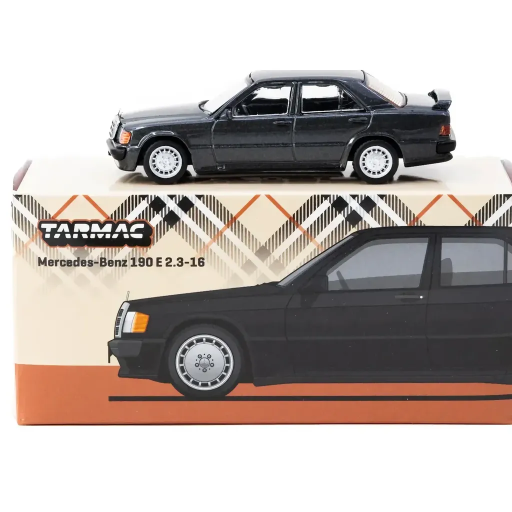 Blåsvart (metallic) Mercedes-Benz 190 E 2.3-16 (W201) tillverkad av Tarmac Works. Modellbilen ingår i Tarmacs serie GLOBAL64. Skalan är 1:64 vilket i detta format kan översättas till ca 7 cm Mercedes-modell.