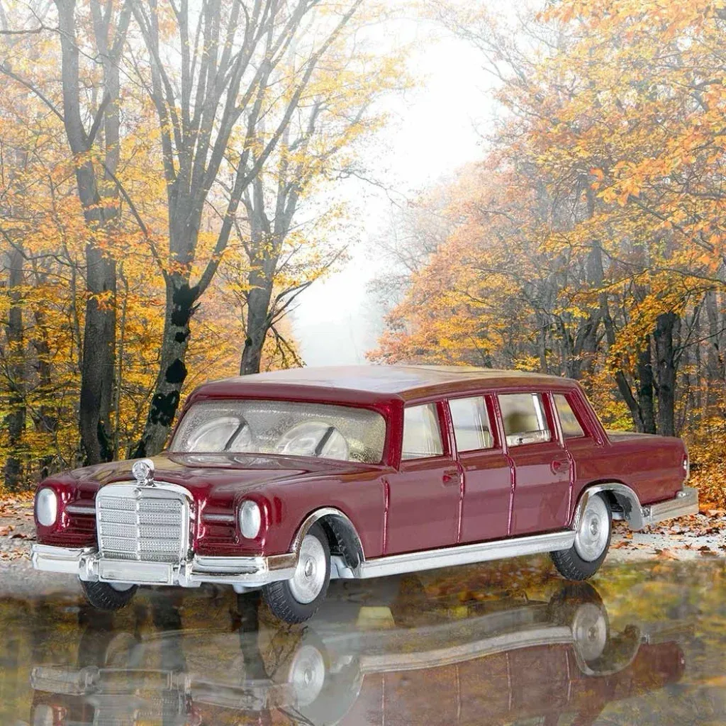 Vinröd Mercedes-Benz 600 Pullman som modellbil från Corgi Toys i skala 1:52 (11,7 cm).