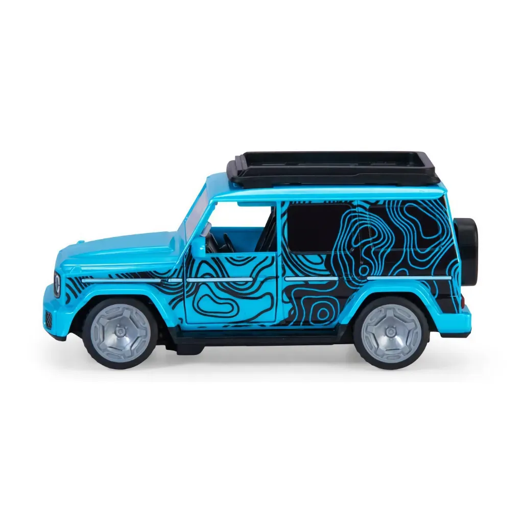 Blå Mercedes-Benz G 580 EQ som leksaksbil från Dickie Toys.