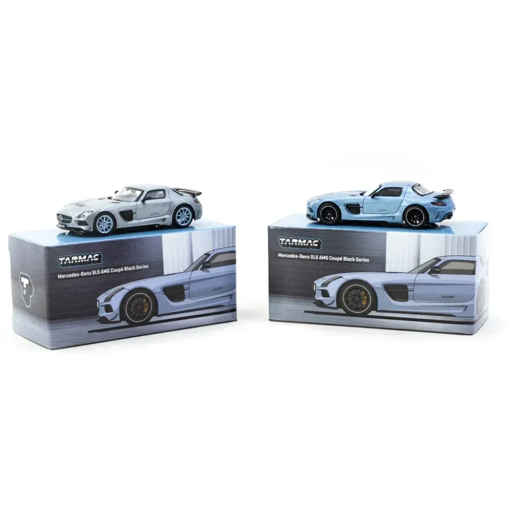 Mercedes-Benz SLS AMG Coupé Black Series (C197) tillverkad av Tarmac Works. Modellbilen ingår i Tarmacs serie GLOBAL64. Skalan är 1:64 (ca 7 cm).