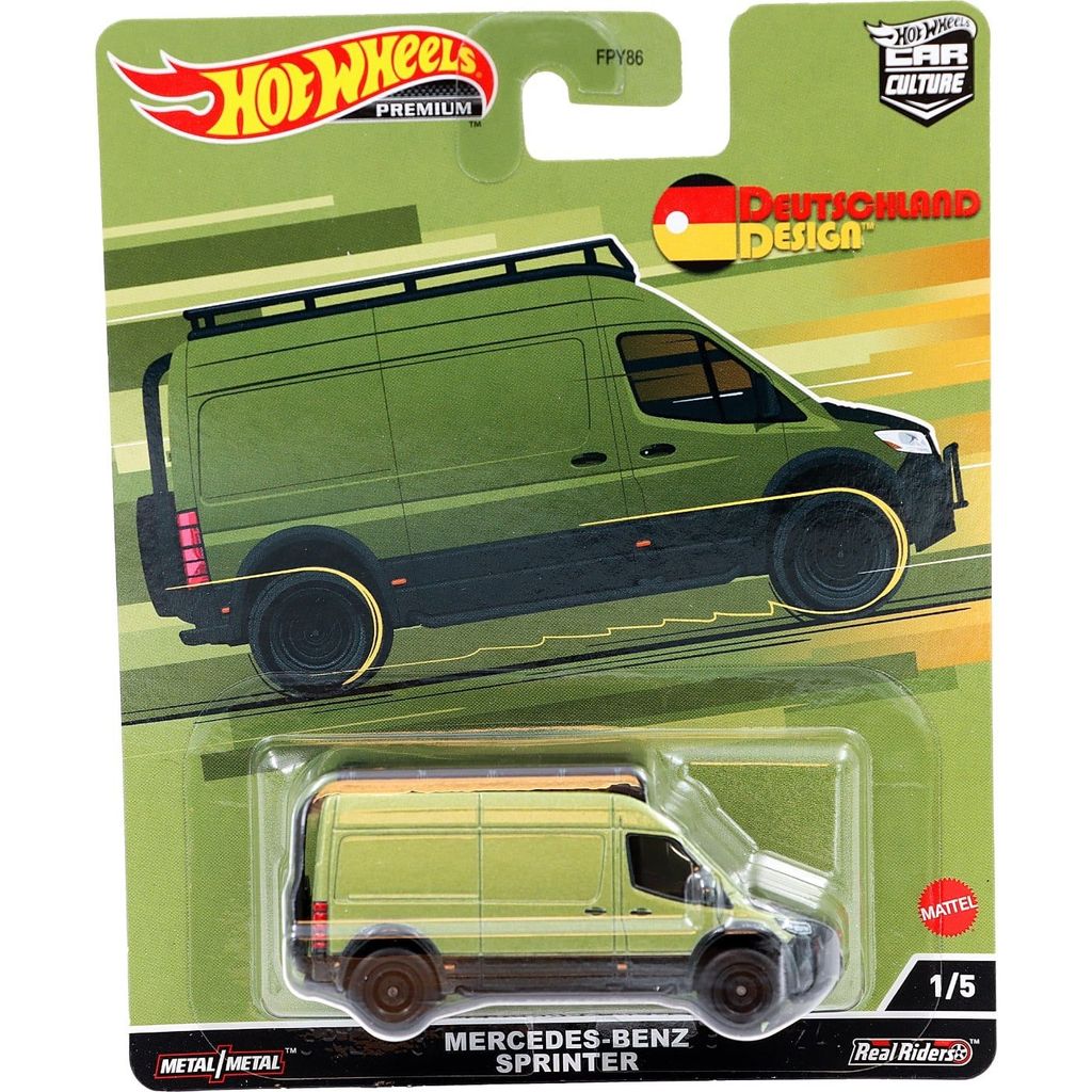 Militärgrön, eller olivgrön, Mercedes-Benz Sprinter Tourer från Hot Wheels. Bilen ingår i serien Car Culture - Deutschland Design från 2022 där denna Sprinter är bil 1 av 5.