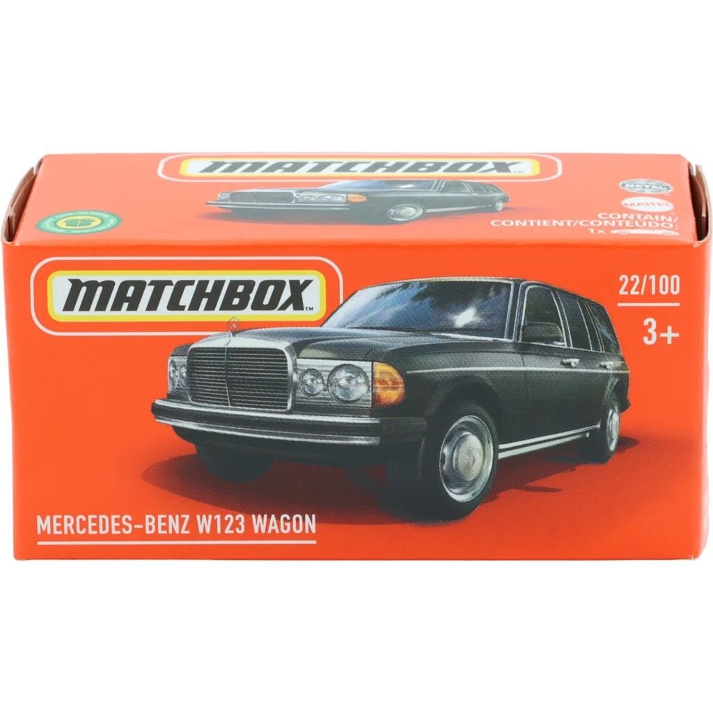 Mercedes-Benz W123 Wagon från Matchbox och serien Power Grab där denna leksaksbil är bil nummer 22/100. Bilen ingår i E-case 2021.