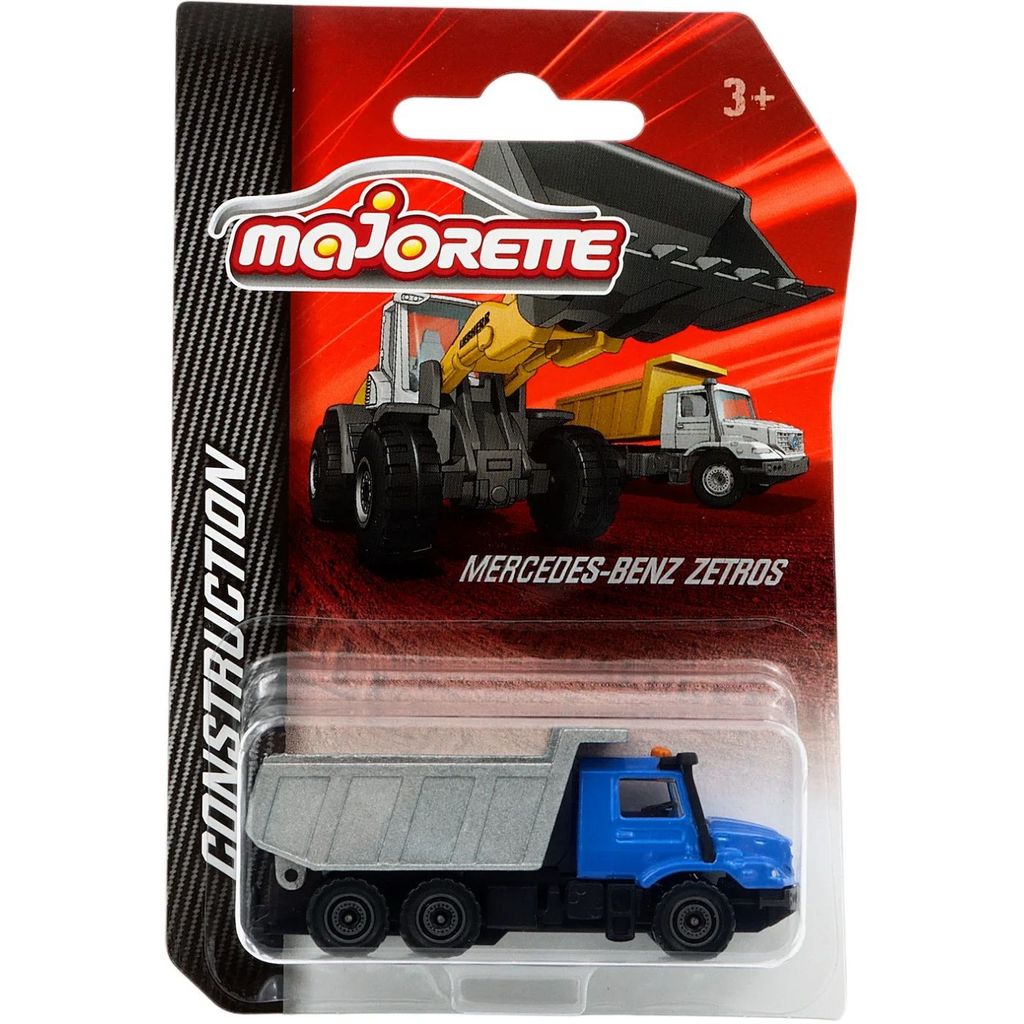 Mercedes-Benz Zetros som blå tipplastbil från Majorette och serien Construction.