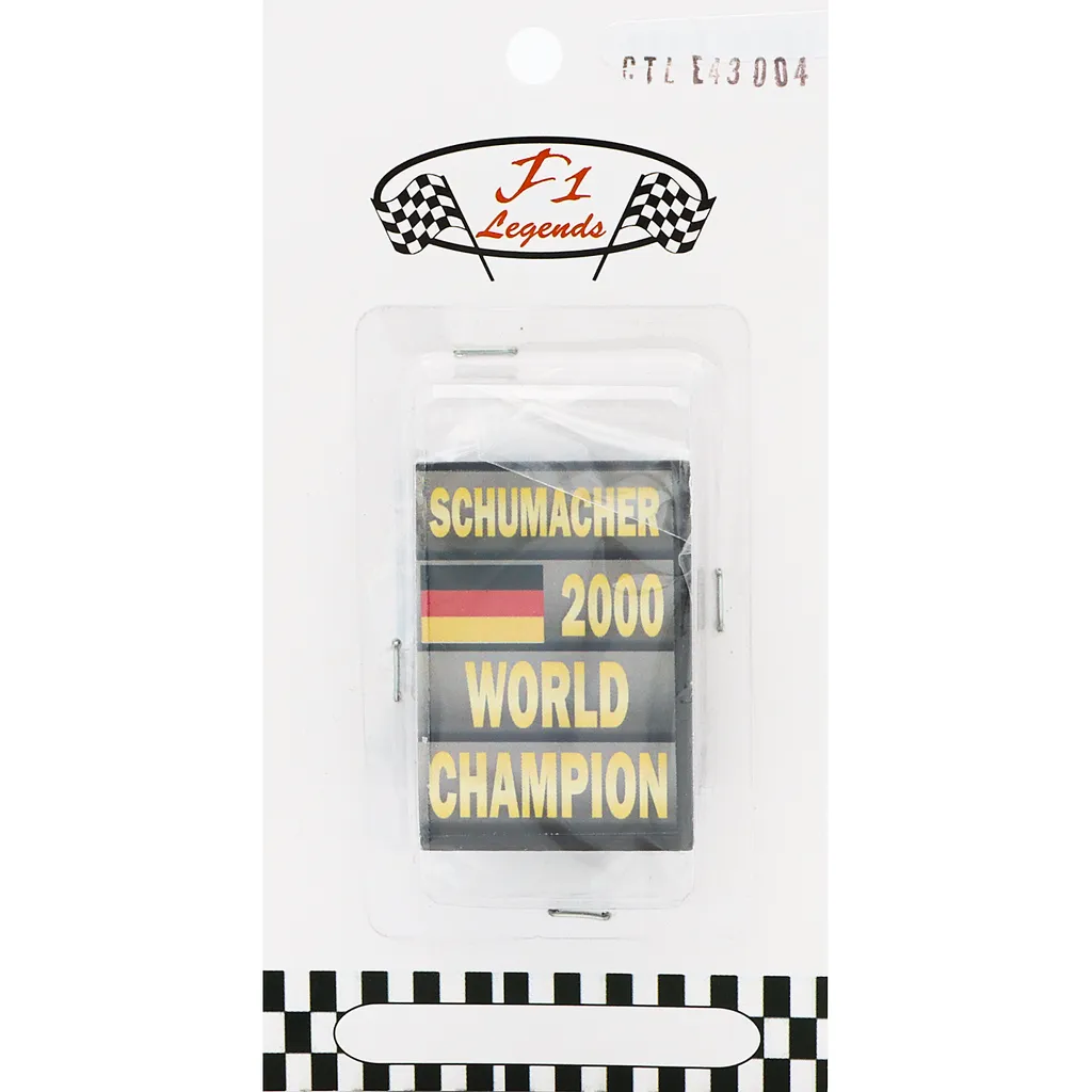 Pit Board i skala 1:43 (4 x 3 cm) när Michael Schumacher blev världsmästare i Formel 1 år 2000.