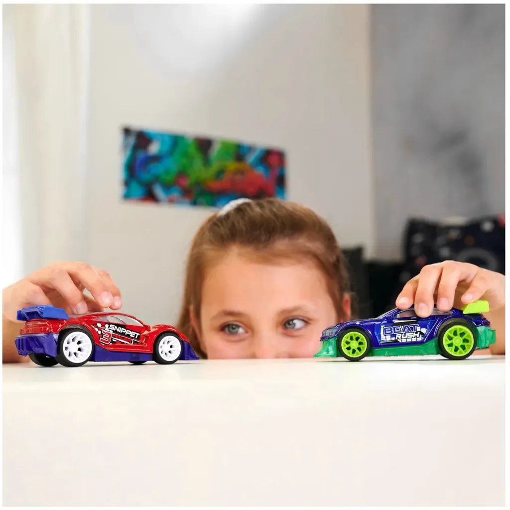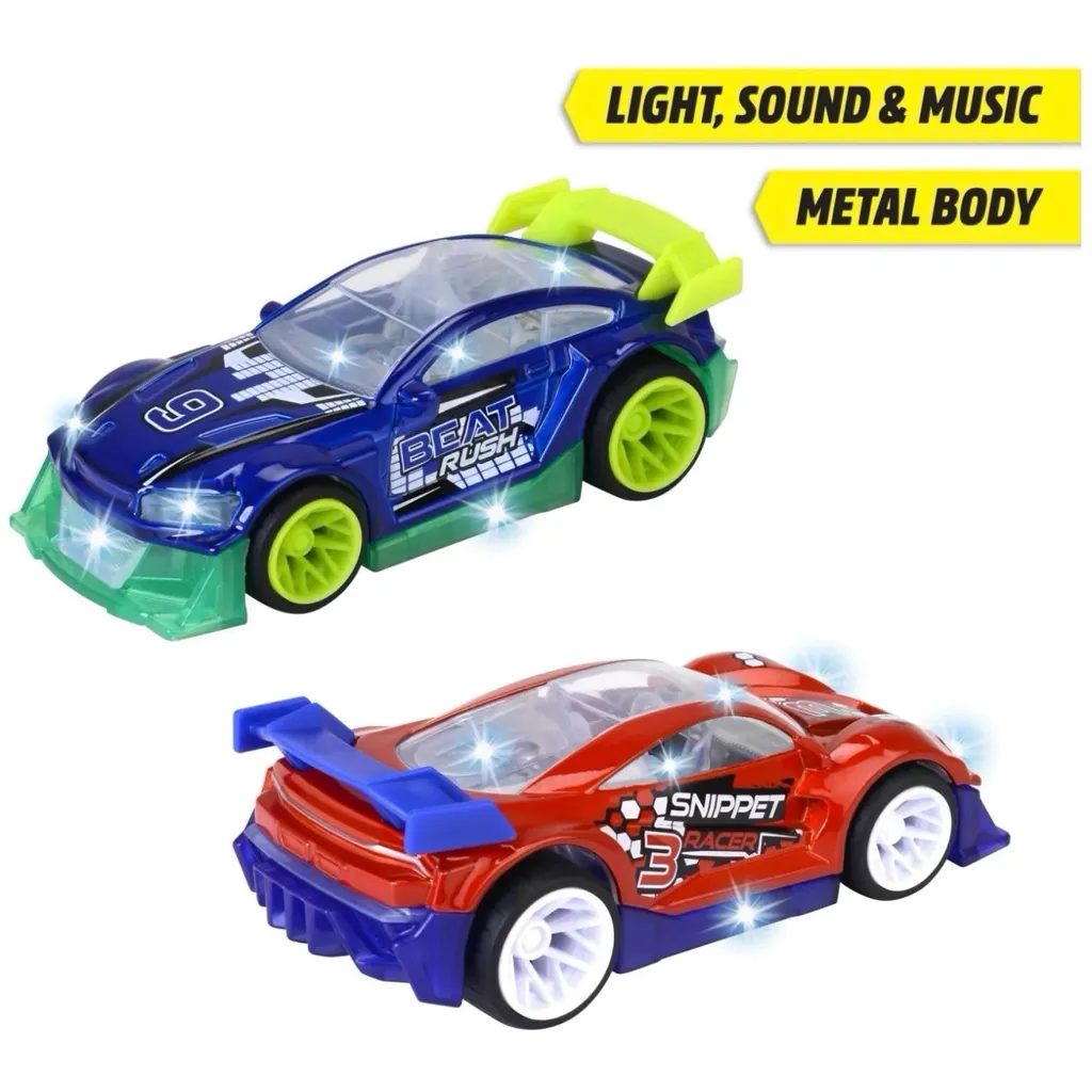 Ett tryck på bilen aktiverar olika ljudeffekter som består av motorljud, däcktjut och en musikslinga med elektronisk musik. Samtidigt som ljuden spelas upp lyser och blinkar bilen.