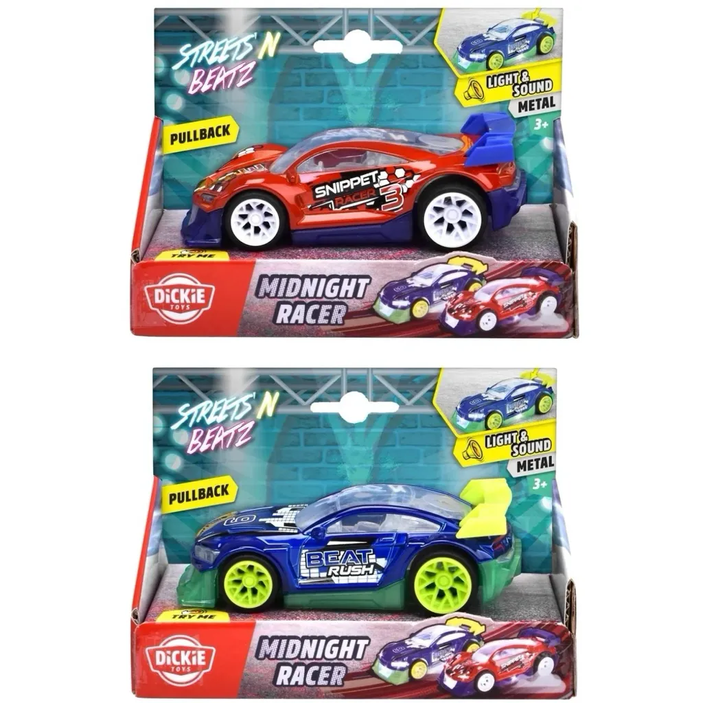 Midnight Racer är en leksaksbil med ljud- och ljus samt pullback från Dickie Toys.