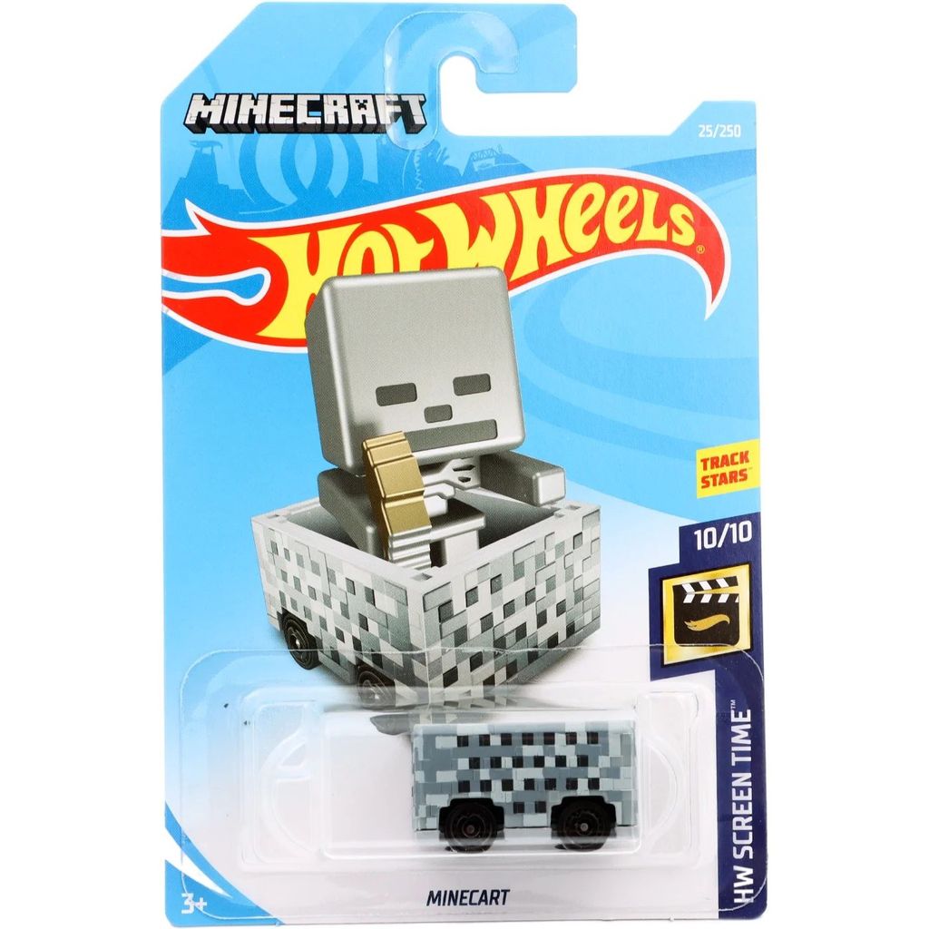 Minecart från Hot Wheels och serien HW Screen Time med Minecraft-tema där denna leksaksbil är bil nummer 10/10. Bilen ingår i L-case "international long cards" (C4982) 2019.