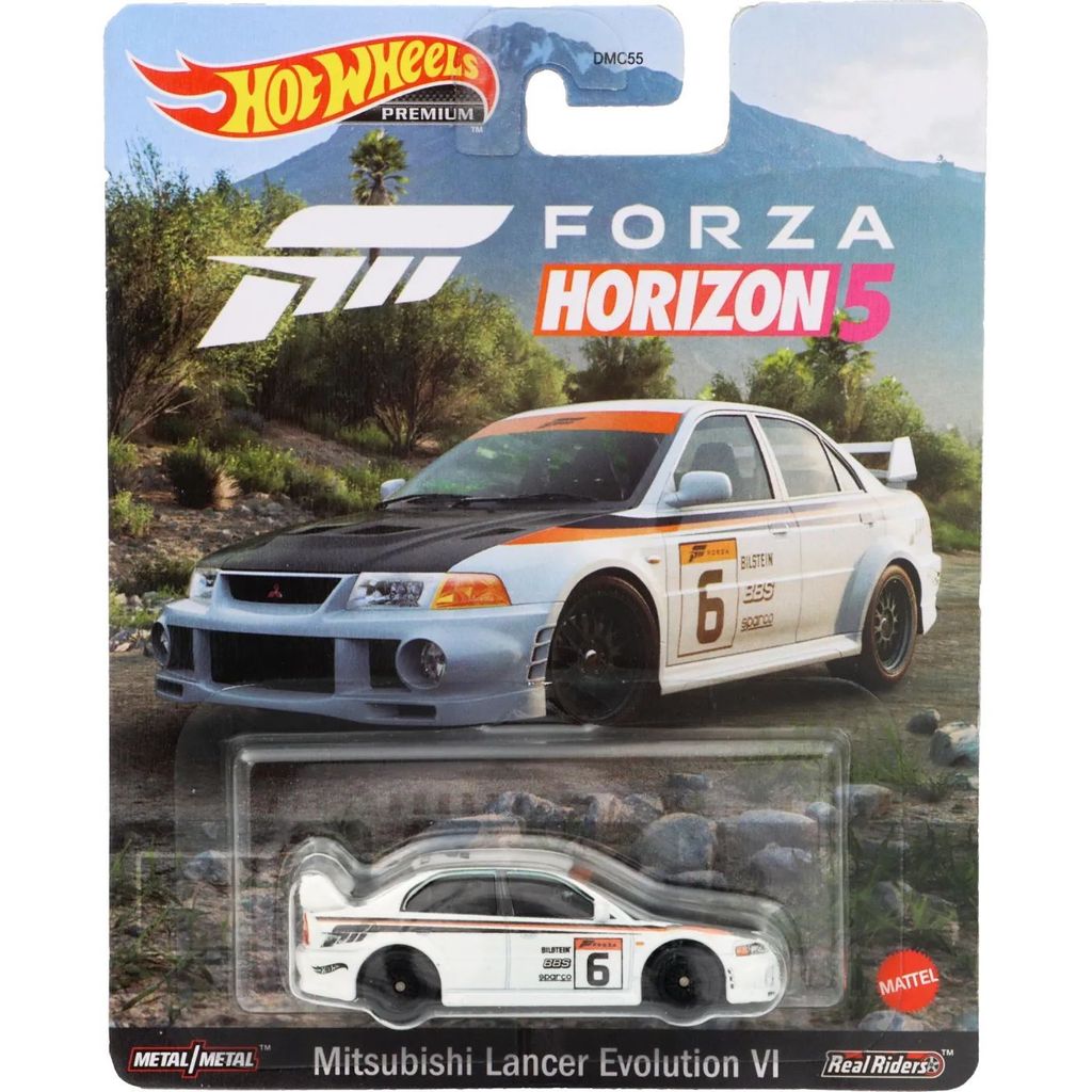Mitsubishi Lancer Evolution VI från tv-spelet Forza Horizon 5 från Hot Wheels. Bilen ingår i setet Replica Entertainment Series, Mix 4, från 2022.