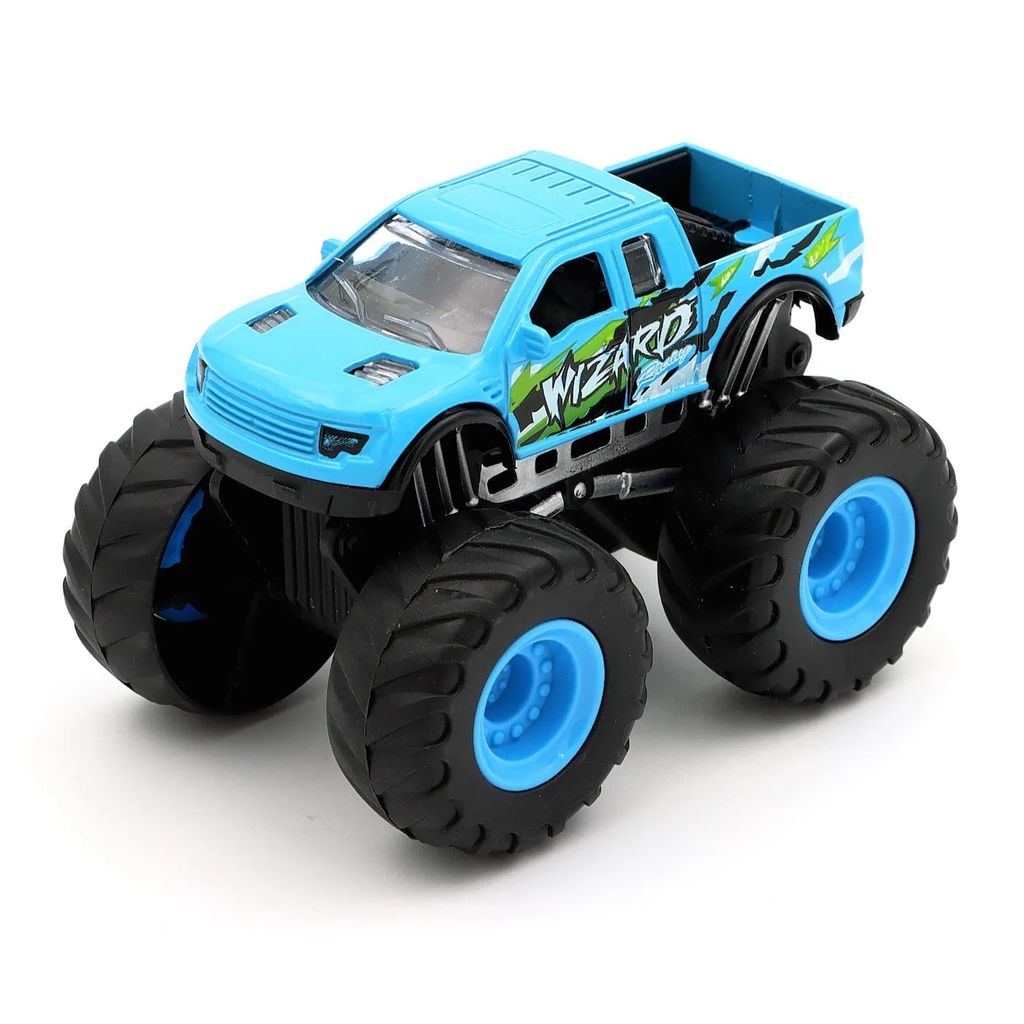 Blå monstertruck som leksakstruck. Trucken är 9 cm.