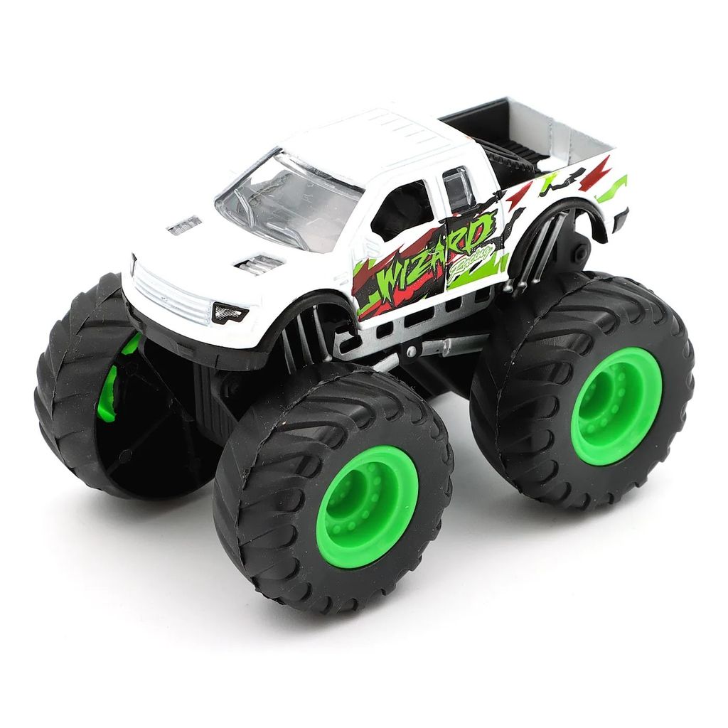 Vit monstertruck som leksakstruck. Trucken är 9 cm.