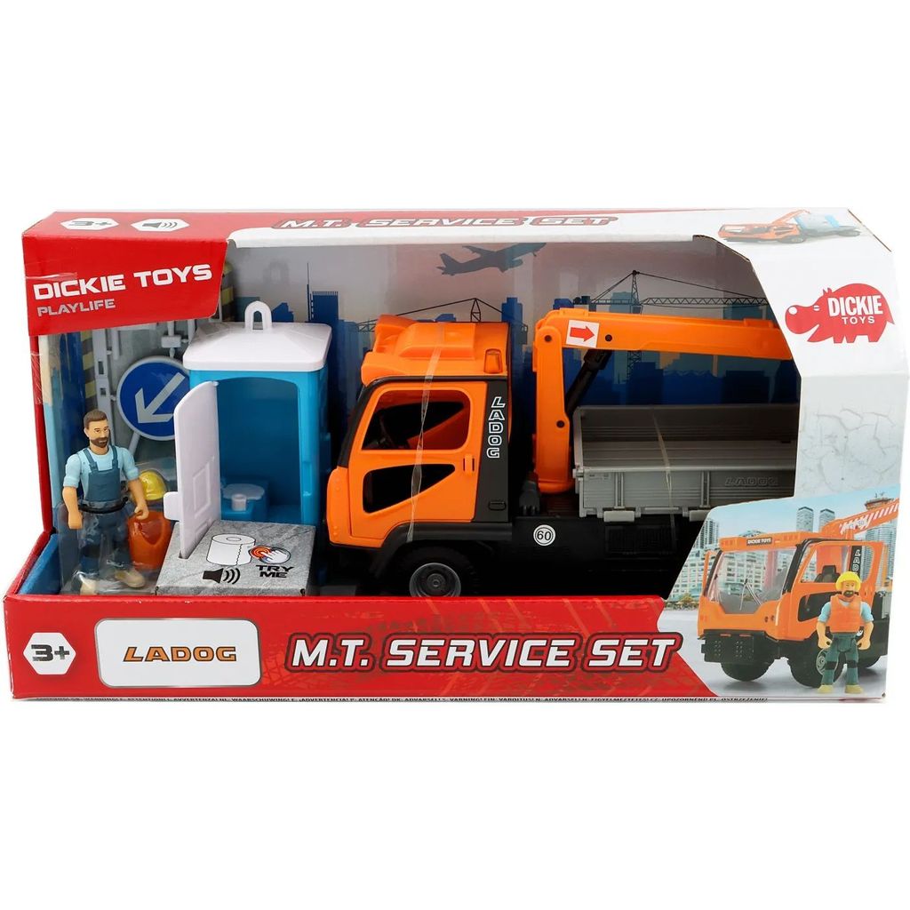 Kör ut en bajamaja med detta servicefordon i form av en kranbil från tyska Ladog från leksakstillverkaren Dickie Toys.