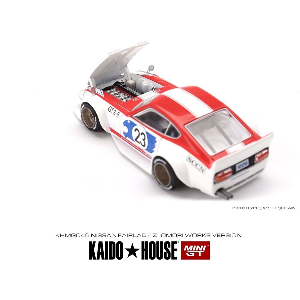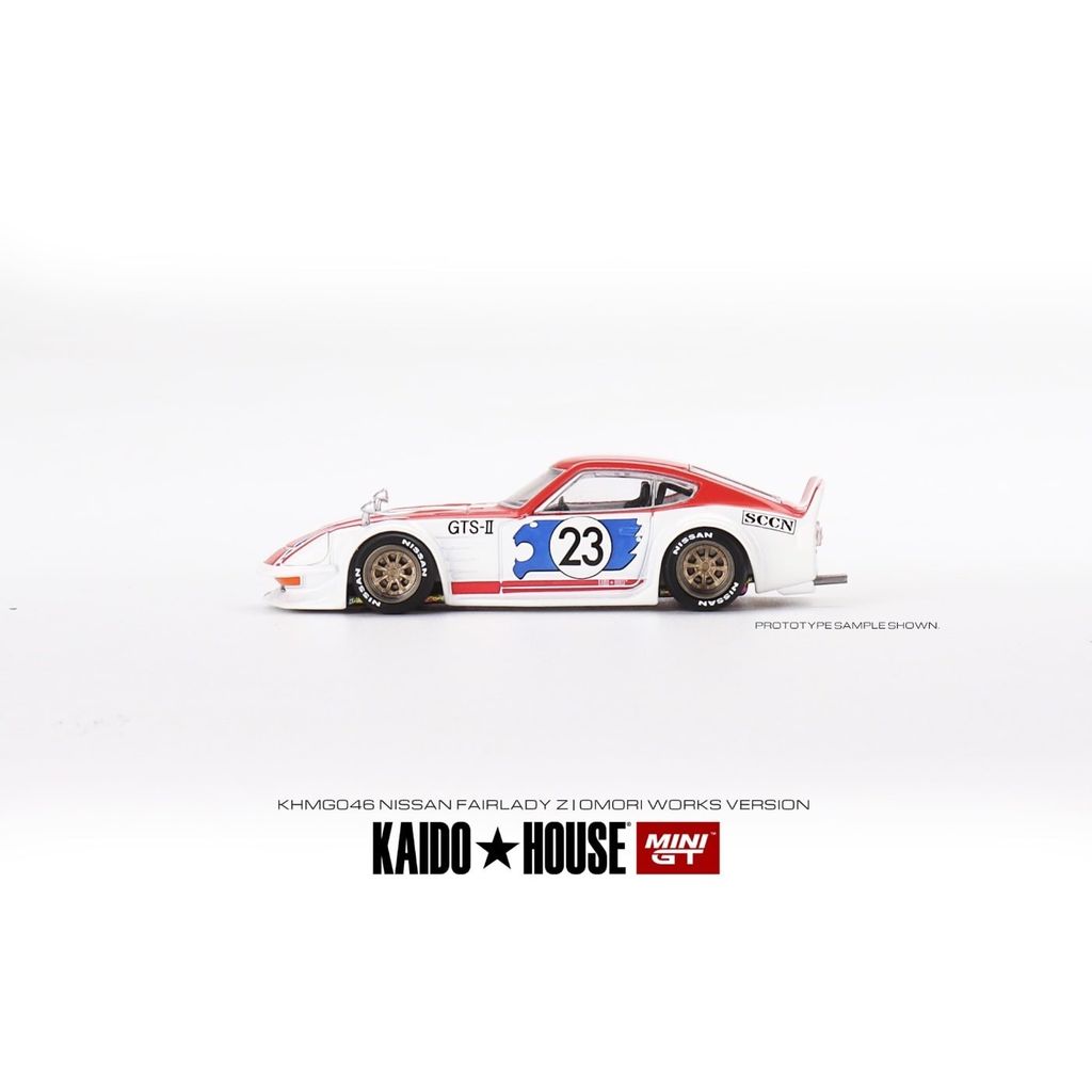 Nissan / Datsun Fairlady Z Kaido GT Omori Works från Mini GT i samarbete med Kaido House. Den fina modellen är i skala 1:64 (ca 7 cm).
