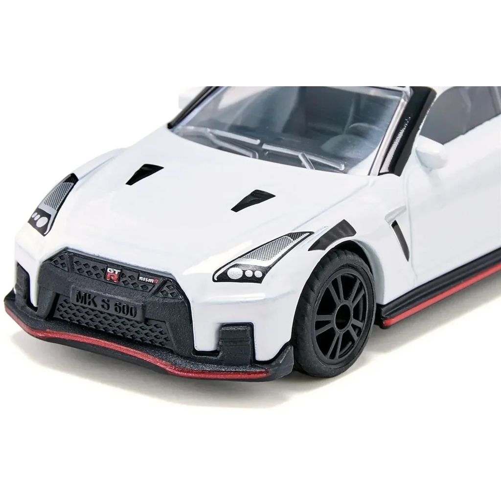 Vit Nissan GT-R Nismo som leksaksbil från Siku.