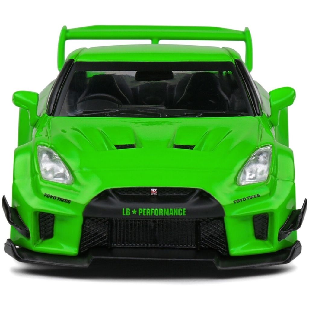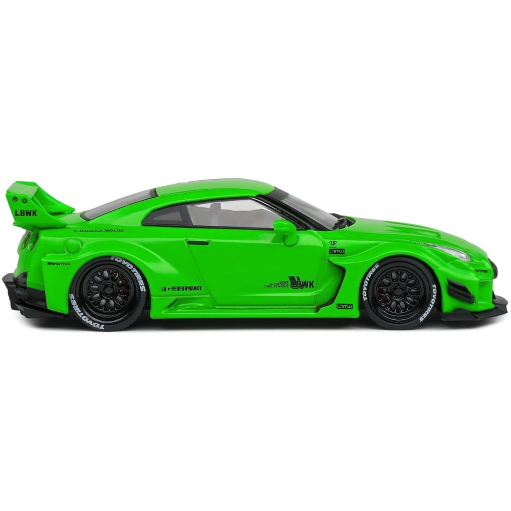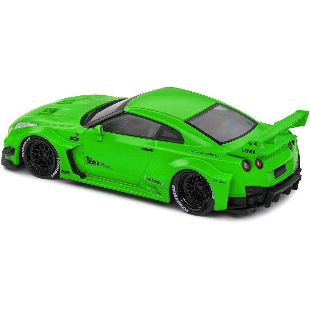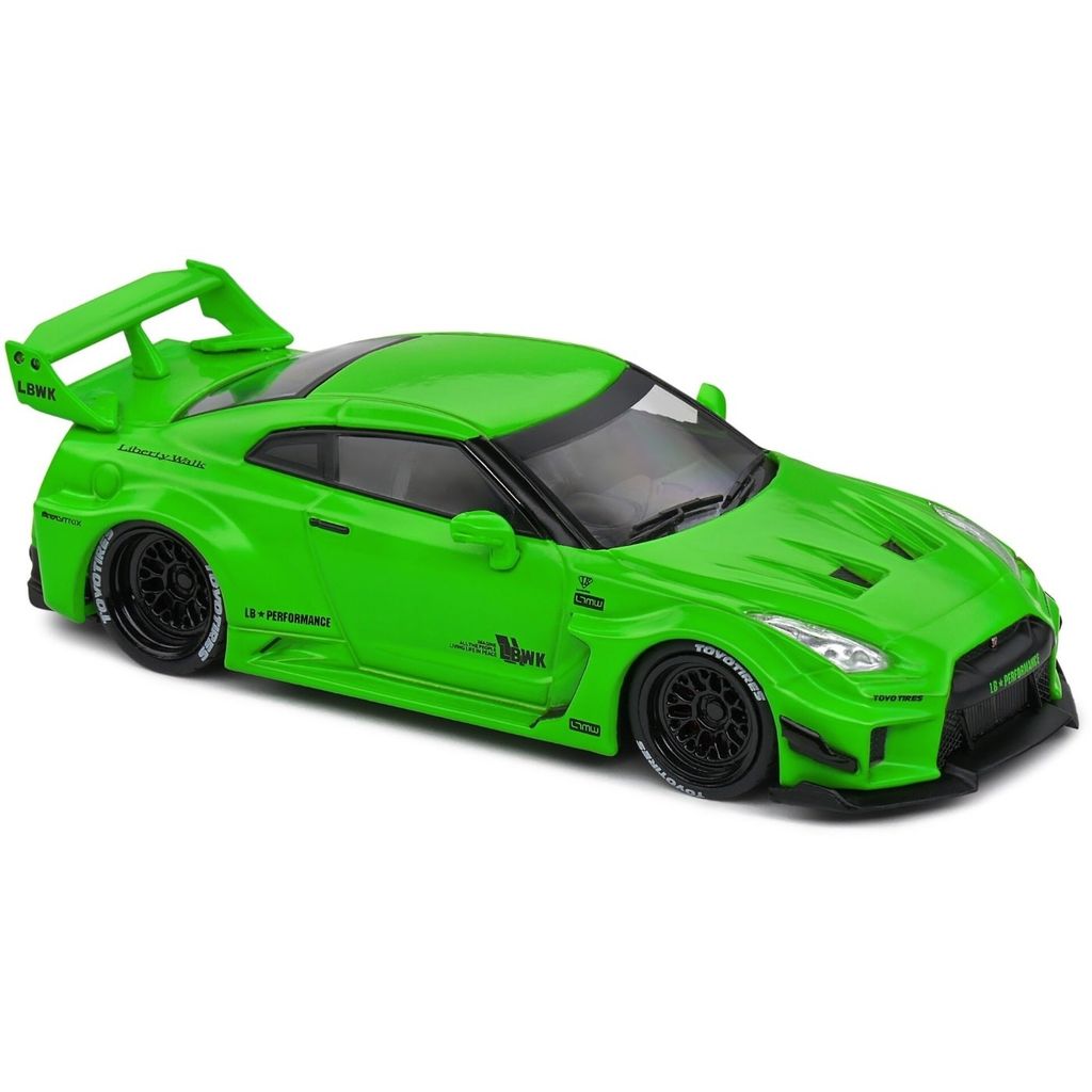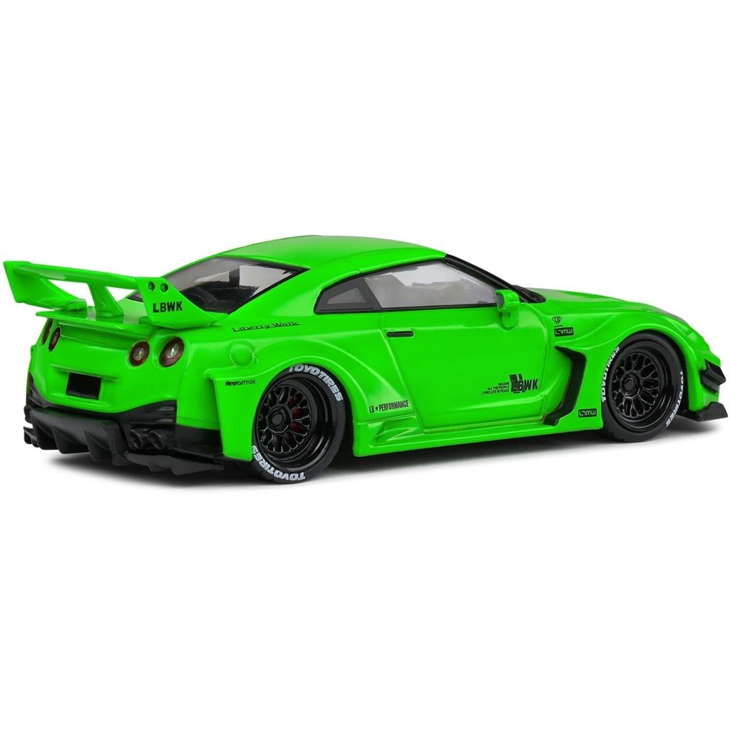 Nissan GT-R (R35) LB Work Silhouette, årsmodell 2020, i grönt (Acid Green) från Solido i skala 1:43 (11 cm).