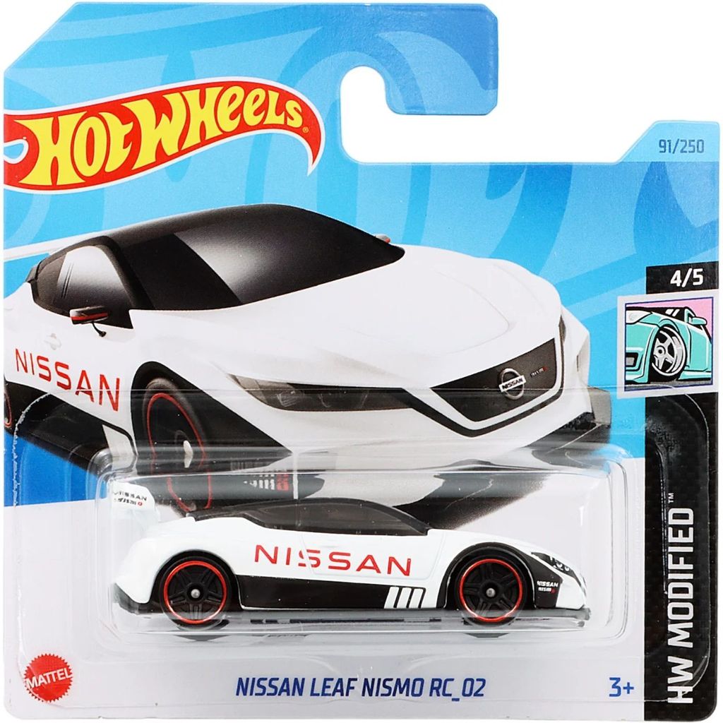Nissan Leaf Nismo RC_02 från Hot Wheels och serien HW Modified där denna leksaksbil är bil nummer 4/5. Sportbilen är nummer 91/250 från 2023 och har ett short card (5785). Bilens artikelnummer är HKK50. Just denna bil ingår i bland annat L case 2023.