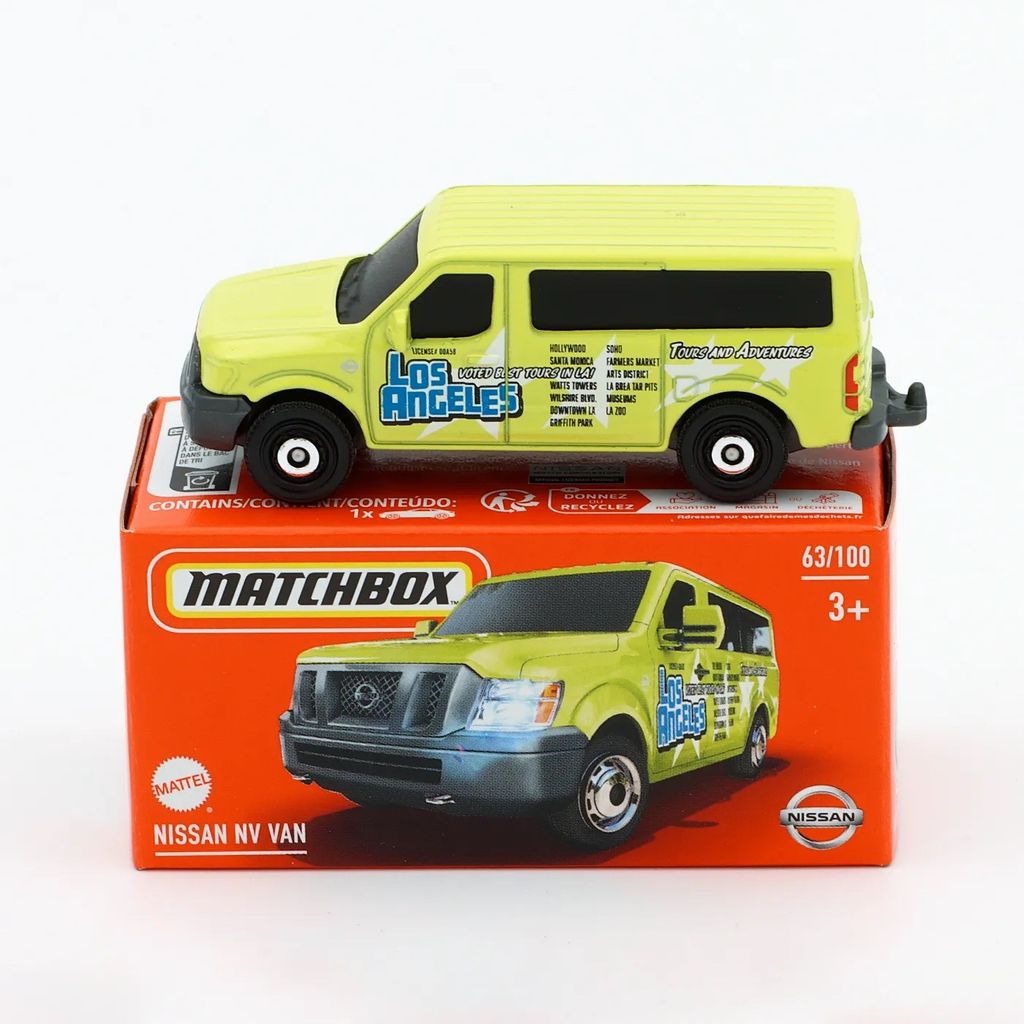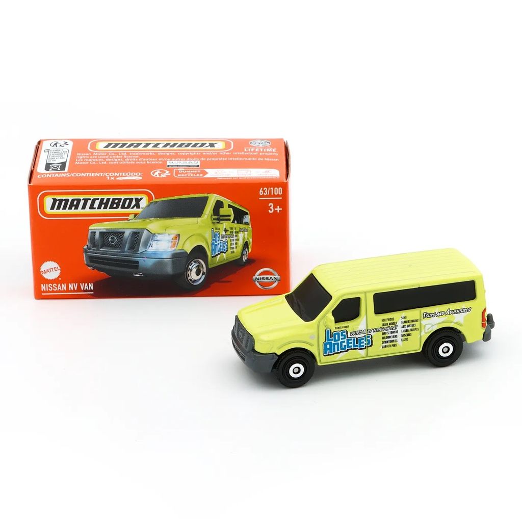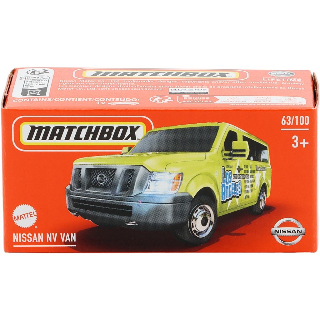 Limegrön Nissan NV VAN från Matchbox och serien Power Grab där denna leksaksbil är bil nummer 63/100.