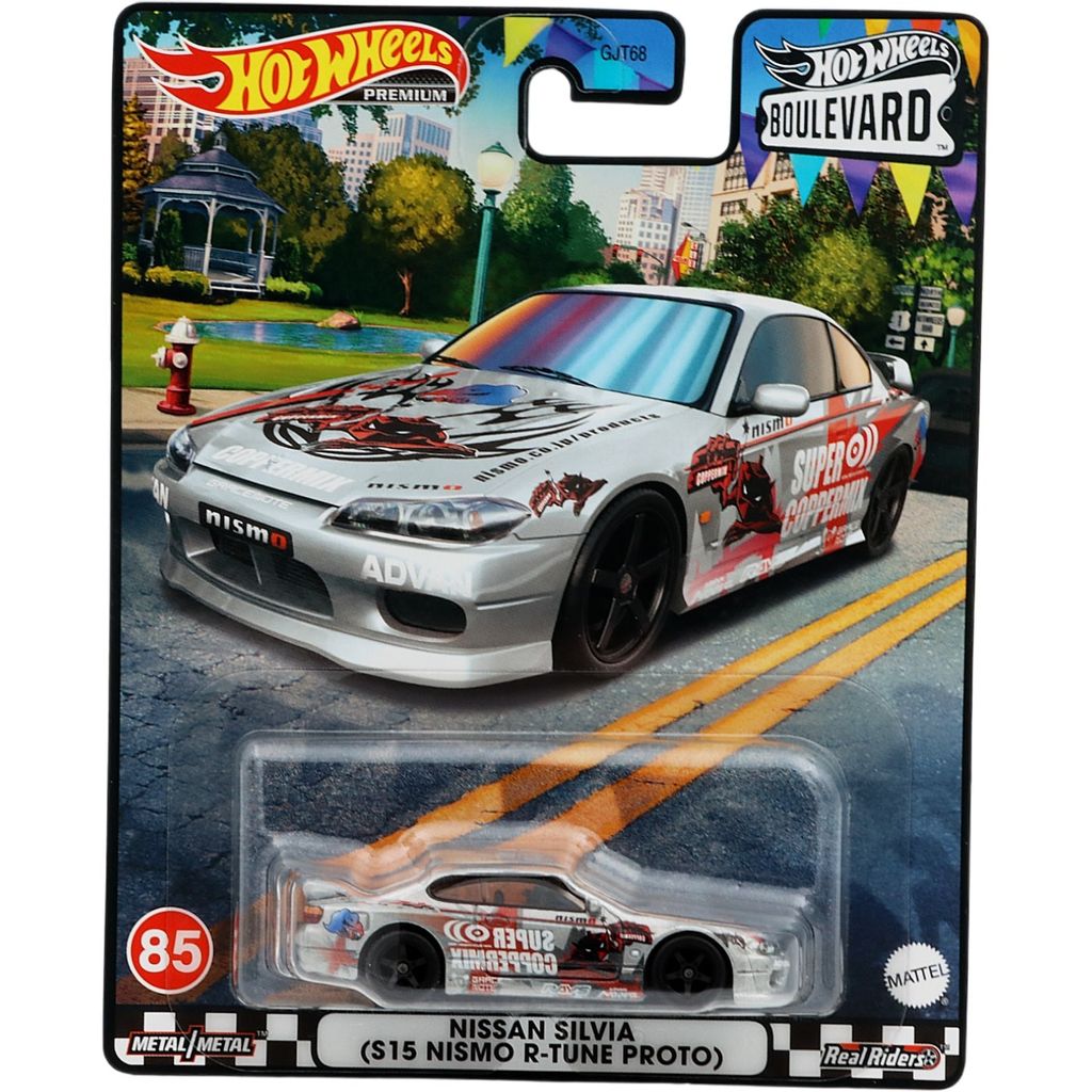 Nissan Silvia (S15 Nismo R-Tune Proto) i silver från Hot Wheels och setet Boulevard där denna bil är nummer 85.