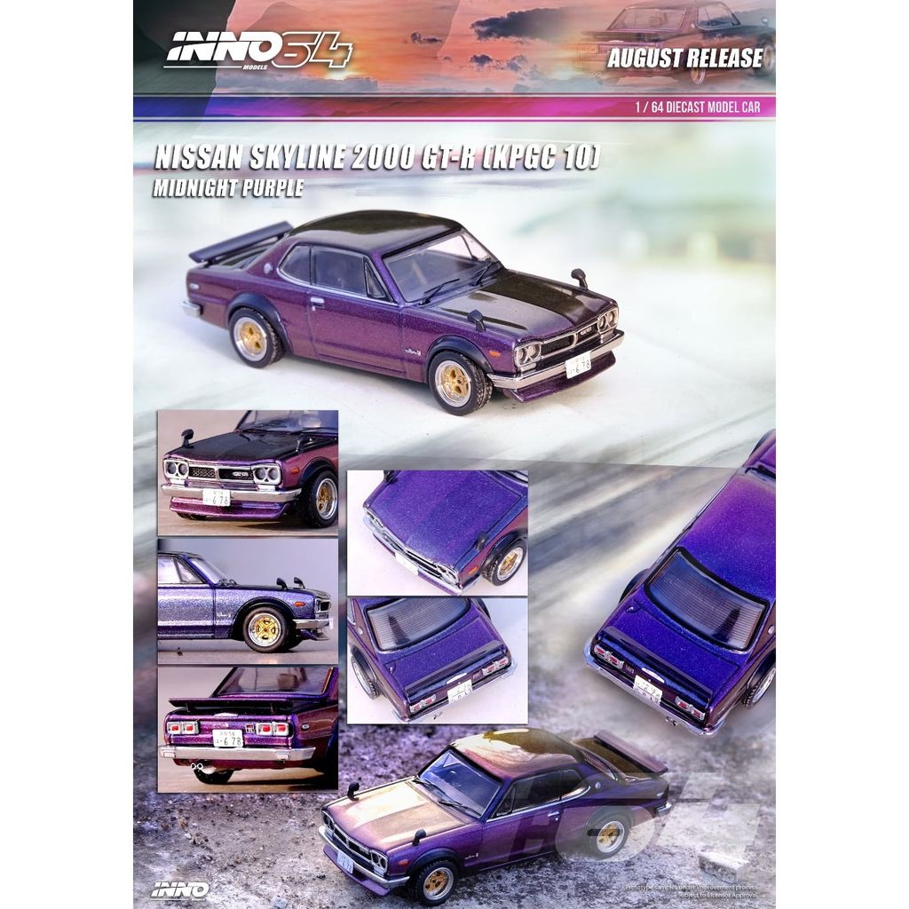 Nissan Skyline 2000 GT-R (KPGC10) i färgen Midnight Purple från Inno Models och deras serie Inno64.