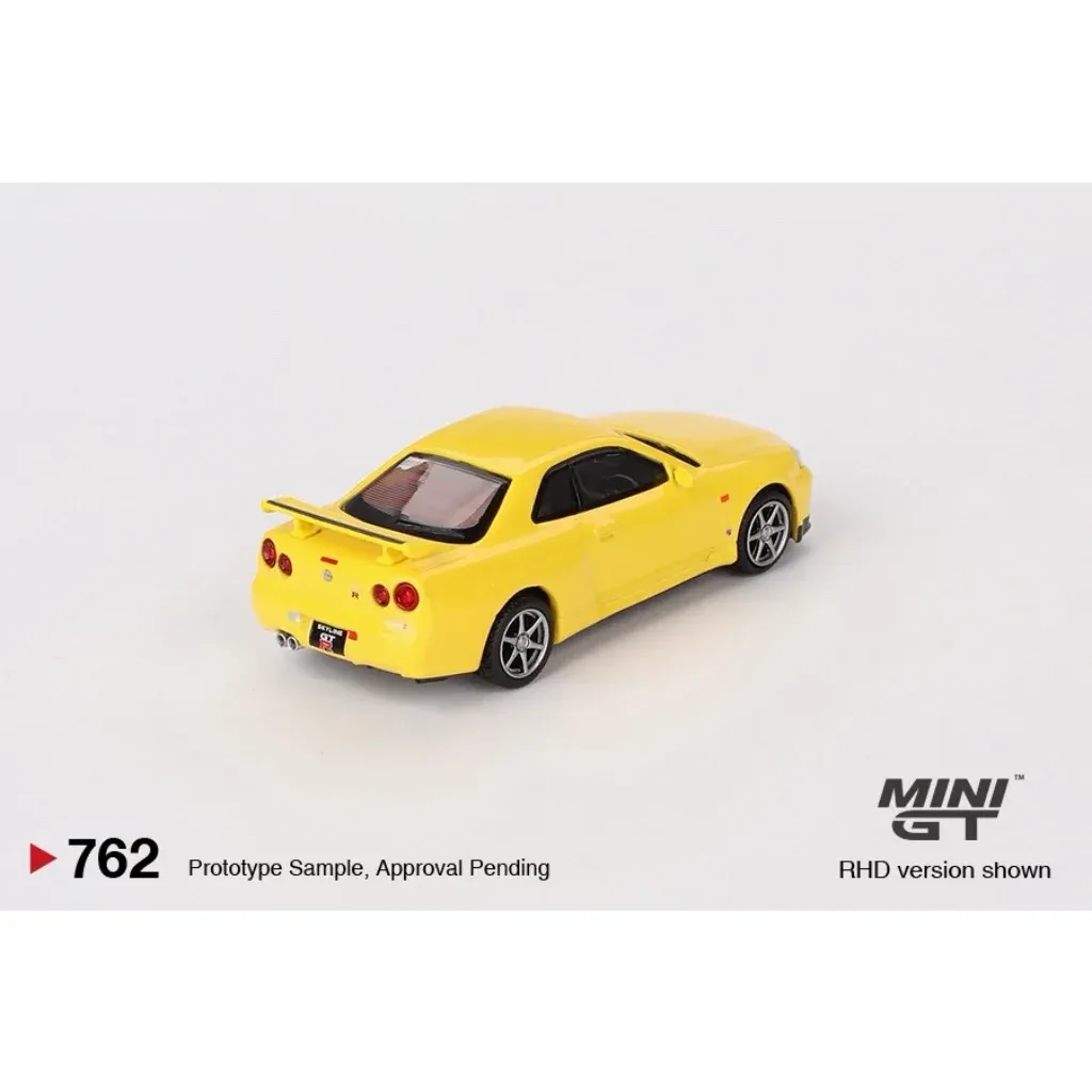 Nissan Skyline GT-R (R34) V-Spec - Gul 762 - Mini GT - 1:64