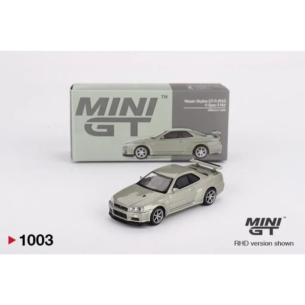 Modellens kompletta namn är "Nissan Skyline GT-R (R34) V-Spec II Nür Millenium Jade RHD" där RHD står för att bilen är högerstyrd.