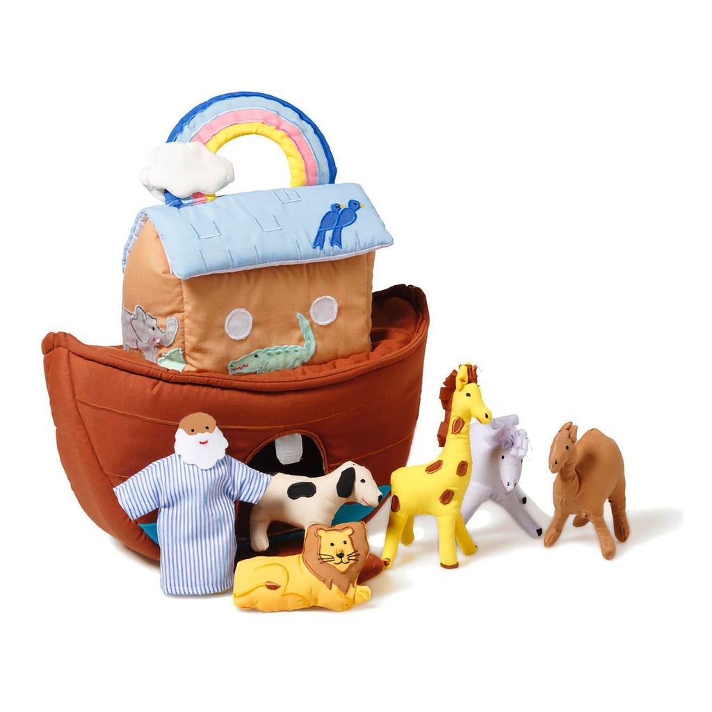 Noaks Ark i tyg från oskar&ellen med 7 delar, bland annat en ark, Noak och flera djur.