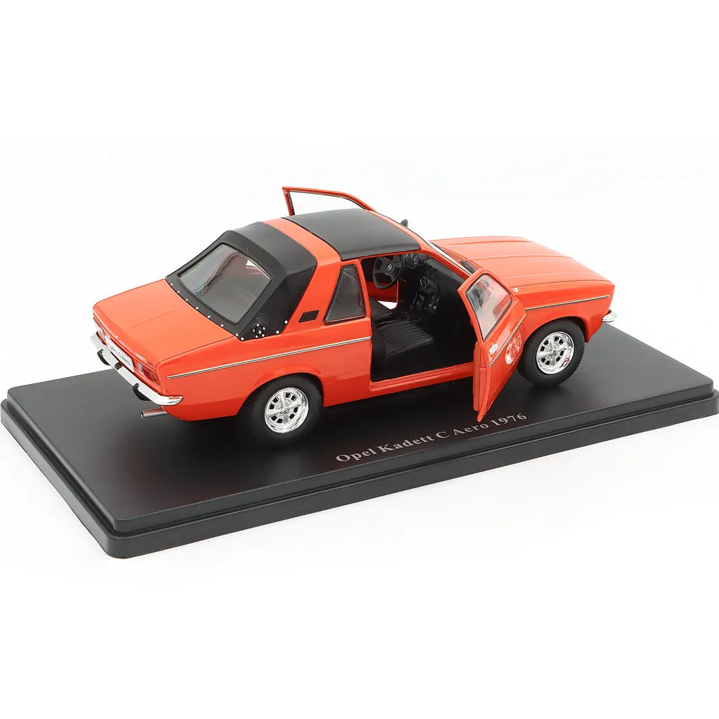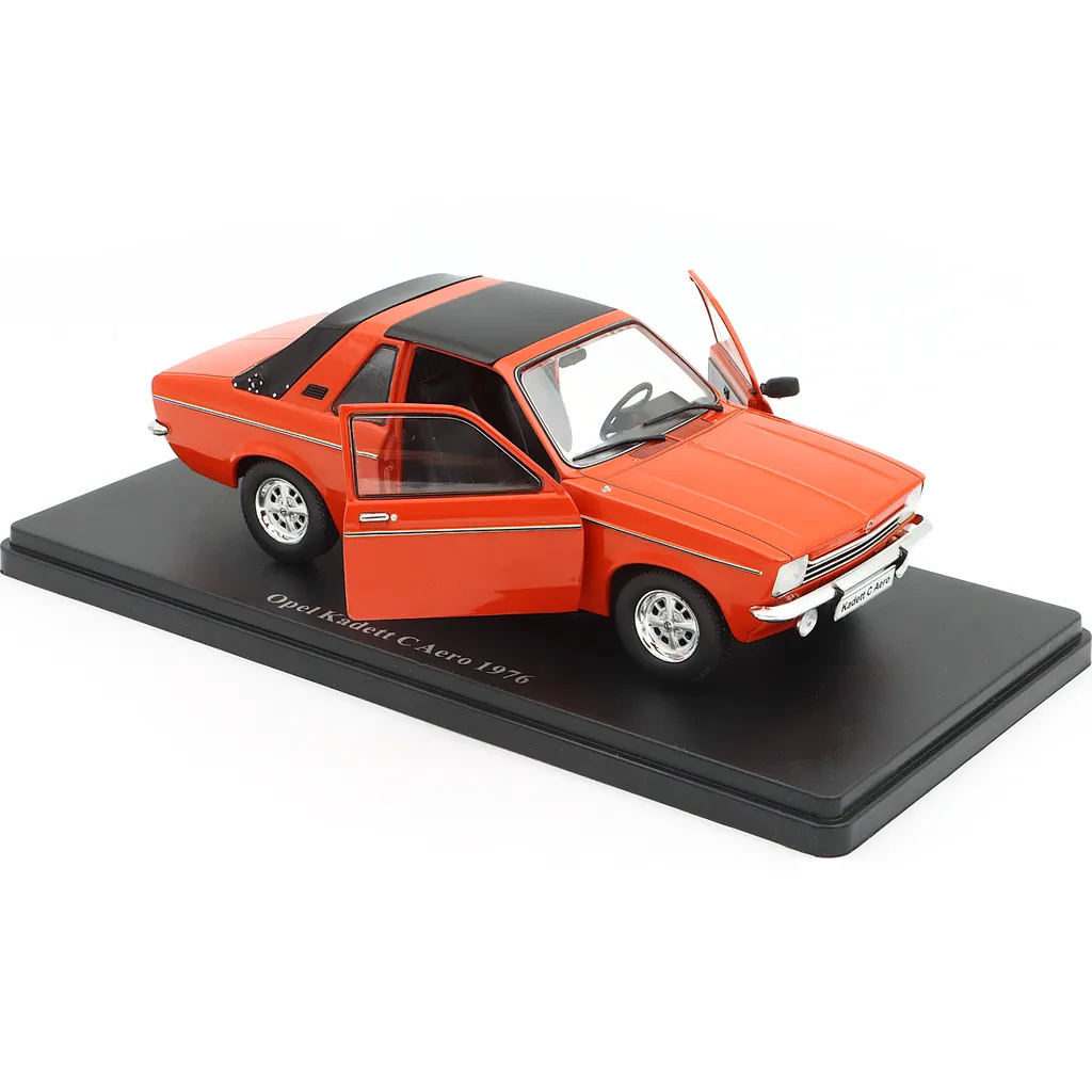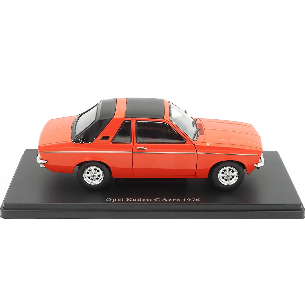 Orange och svart Opel Kadett C Aero, årsmodell 1976, som modellbil i skala 1:24 (17 cm) från Hachette Models / Atlas Editions.