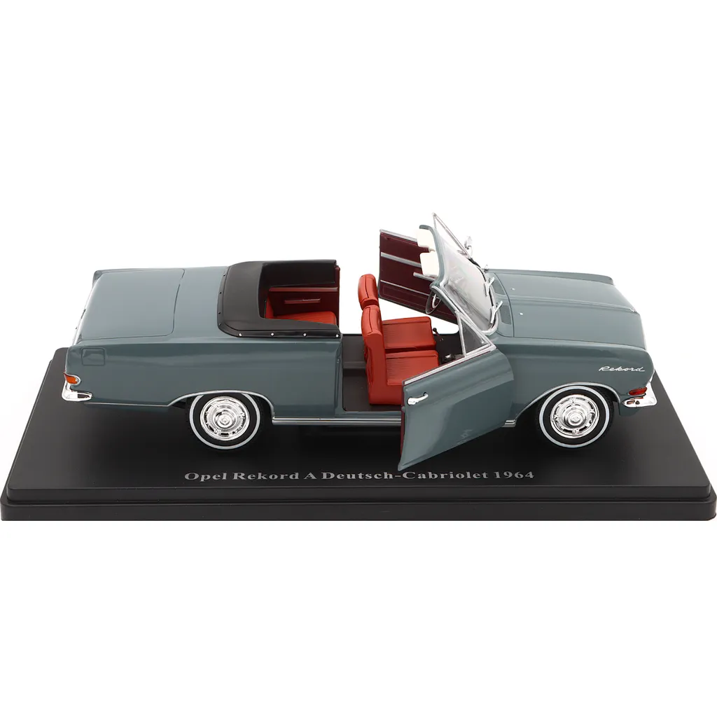 Grå Opel Rekord A Deutsch-Cabriolet, årsmodell 1964, som modellbil i skala 1:24 (19 cm) från Hachette Models / Atlas Editions.