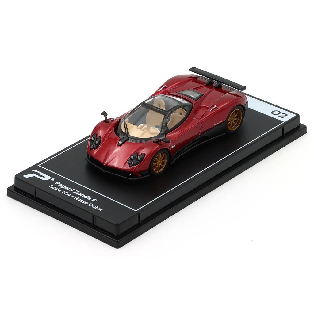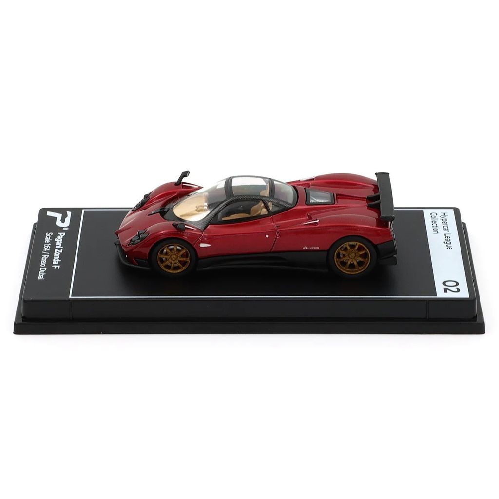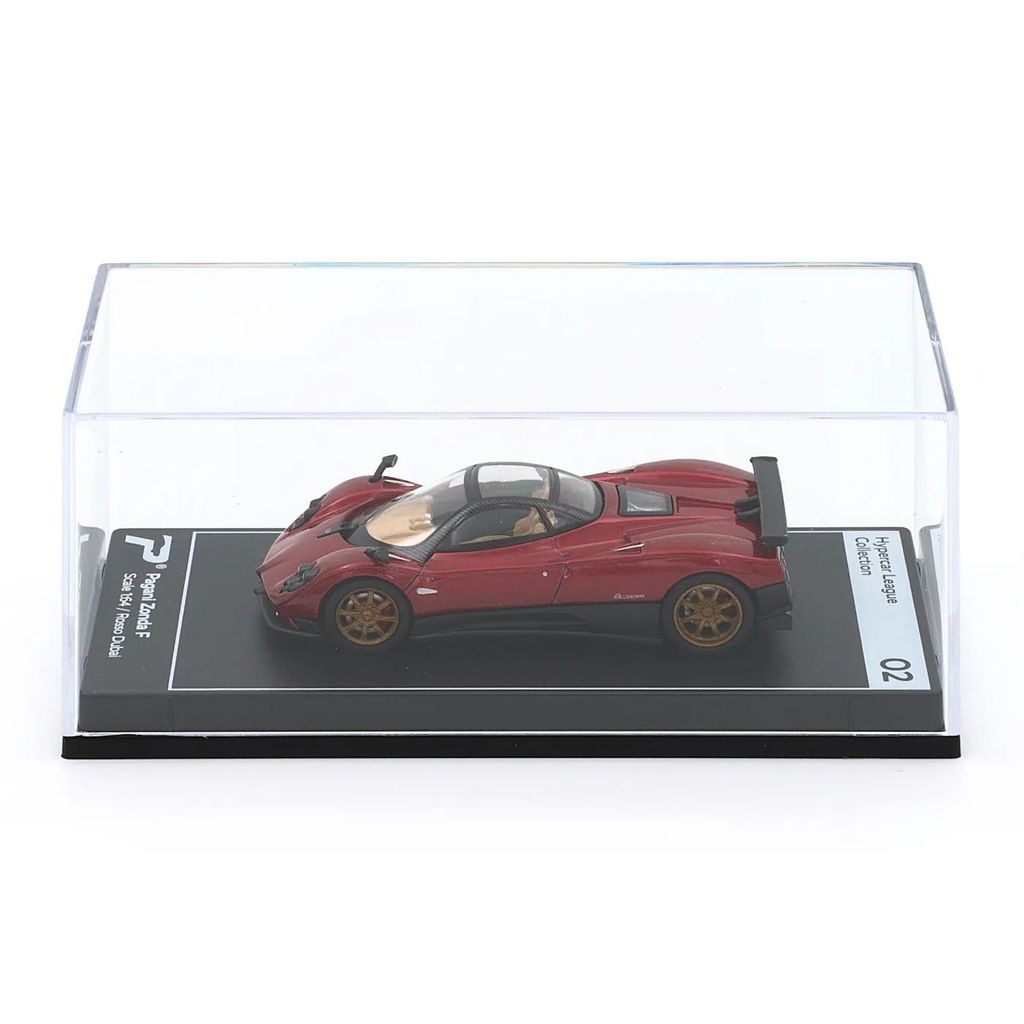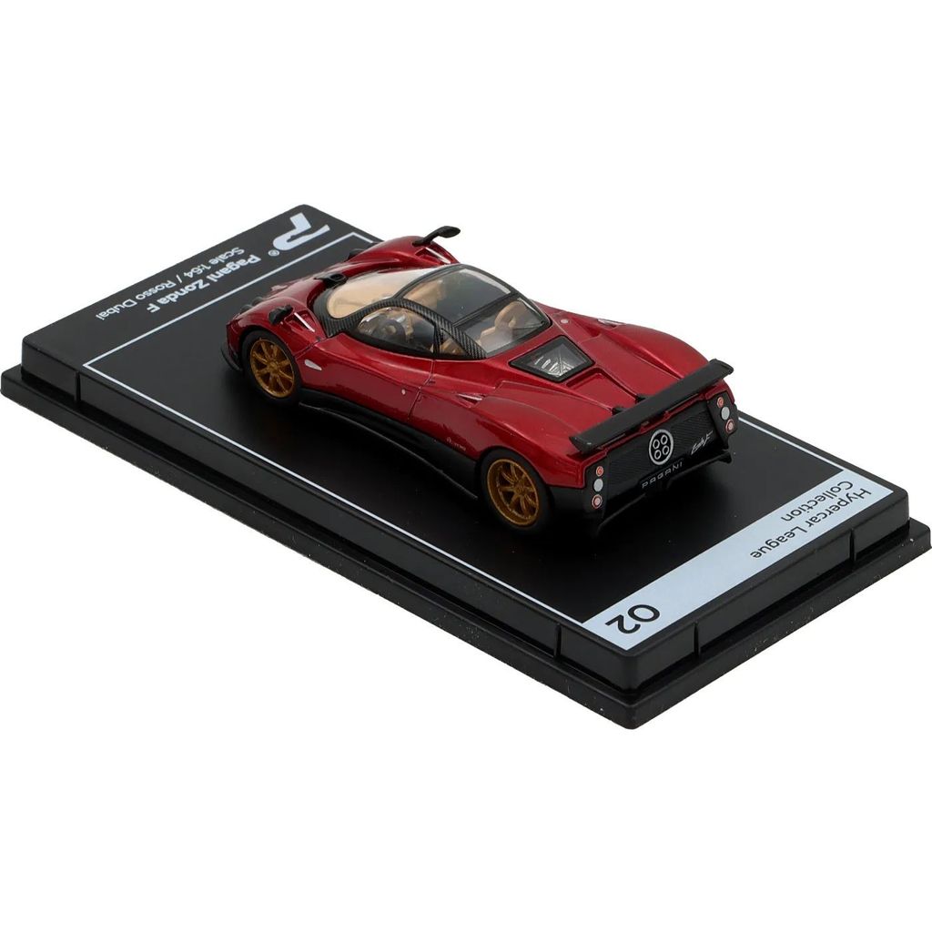 Pagani Zonda F i färgen Rosso Dubai (röd) från modellbilstillverkaren PosterCars och deras serie Hypercar League Collection där denna Pagani Zonda fått nummer 02.