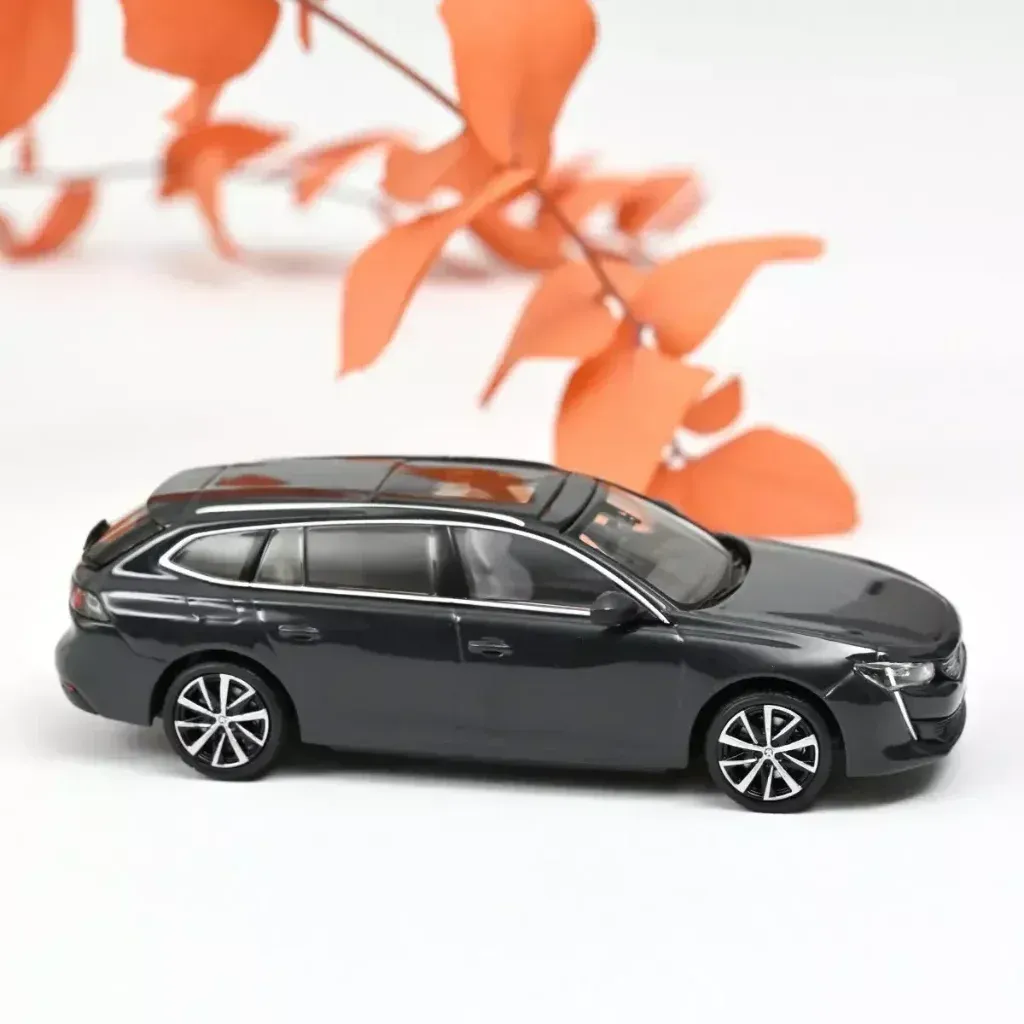 Peugeot 508 SW som modellbil från franska Norev i skala 1:43 (11 cm). Bilen är mörkgrå (Hurricane Grey), nästan svart.